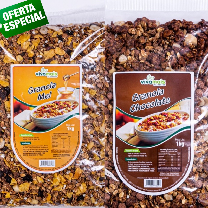Kit 2 Granolas de 1kg ( 1 Chocolate e 1 Mel)