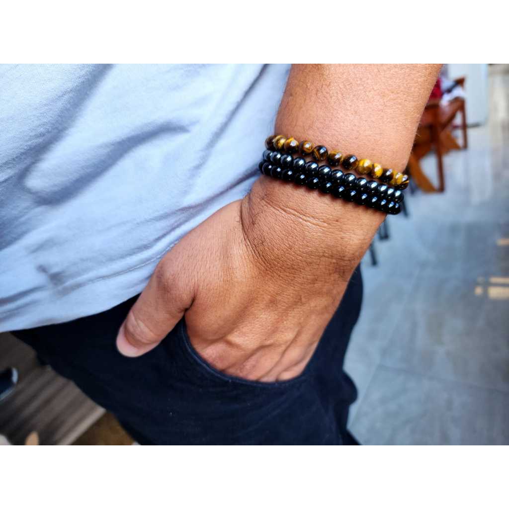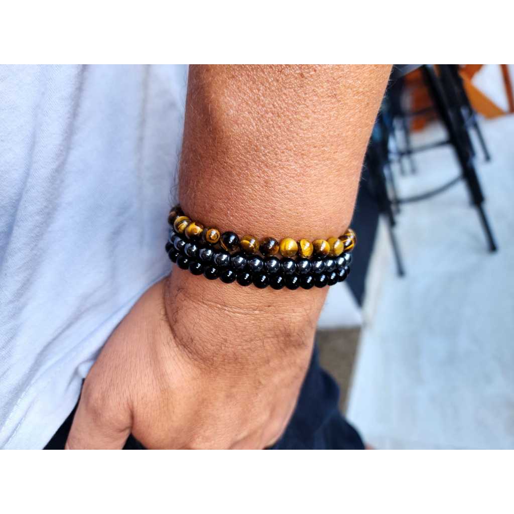 kit 3 pulseiras olho de tigre onix e hematita 6mm