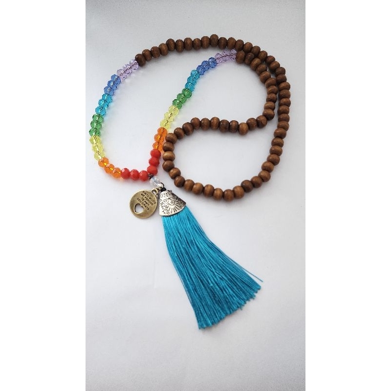 japamala 108 contas de madeira e cristal 7 chackras