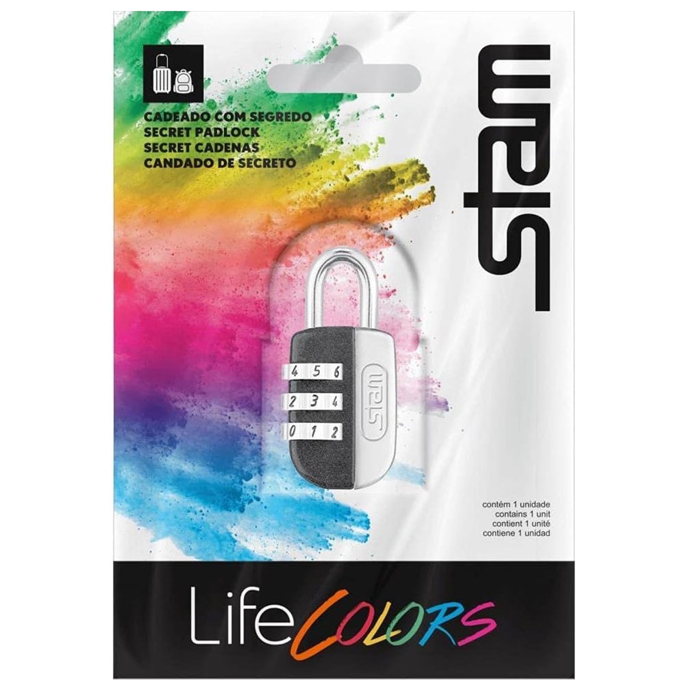 Cadeado Segredo Stam 20mm Malas Mochila Armário Porta Viagem Preto Fosco