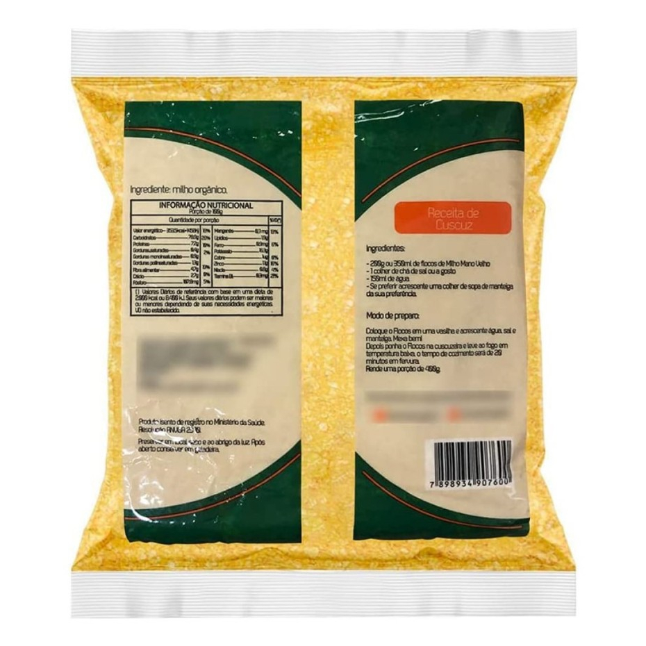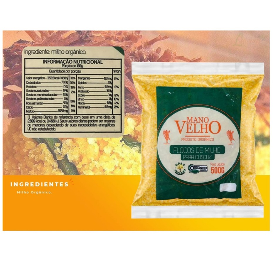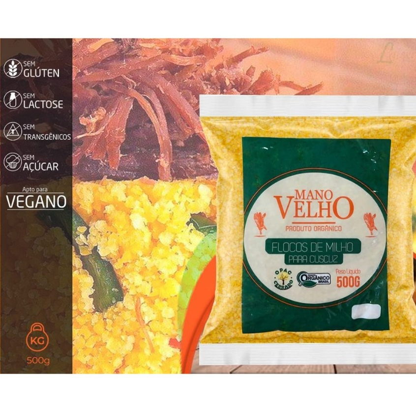 Flocos De Milho Mano Velho Para Cuscuz Orgânico Natural 500g 3Un