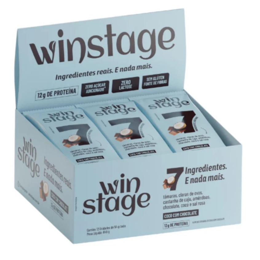 Barra De Proteína Winstage Coco Com Chocolate 54g Kit 12un