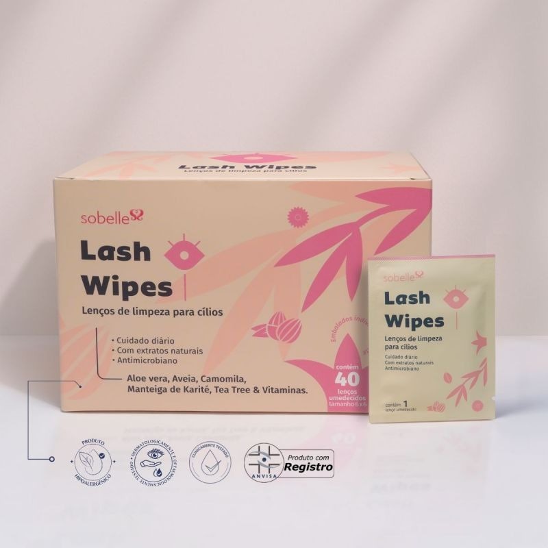 Lash Wipes Lenço Umedecido para Limpeza dos Olhos e Cílios 40un Oftalmologicamente Testado