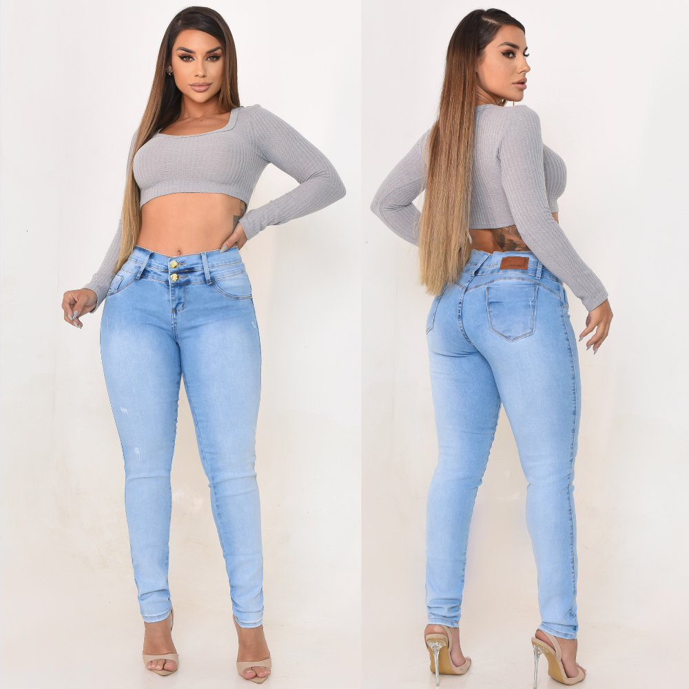 Calça Skinny Jeans Cós Duplo Com Laicra Elastano Cintura Média Feminina
