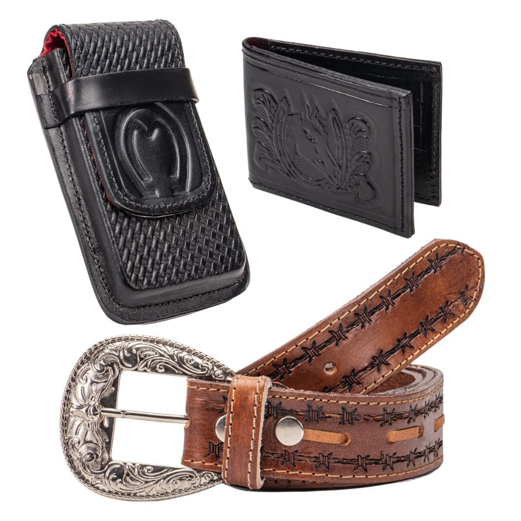 Kit Cowboy Country Cinto + Carteira + Capa Bainha De Celular