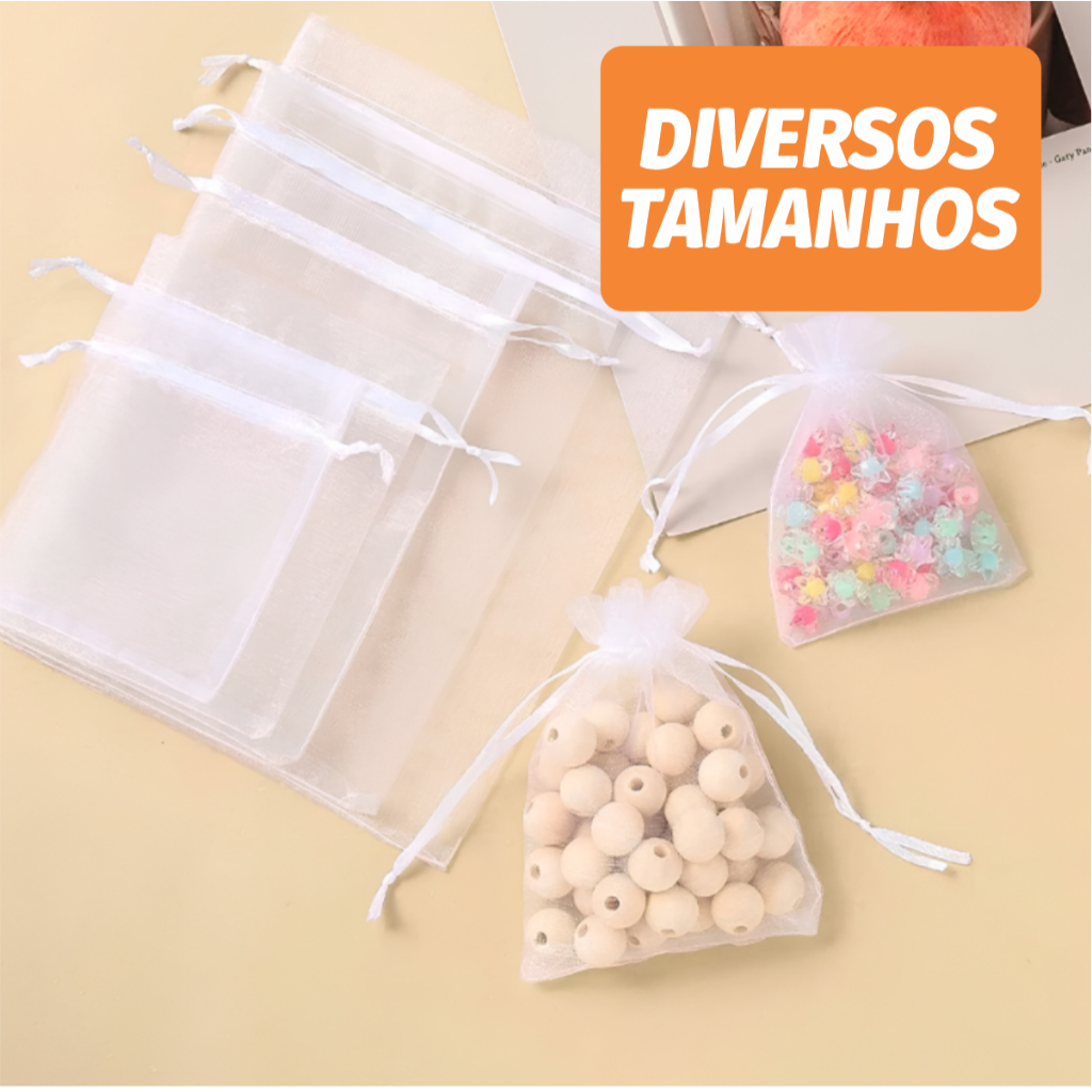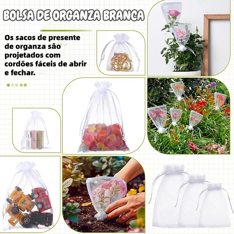 Kit 10/25/50/100 Saquinhos Organza 7x9 9x12 10x15 Branco Lembrancinha Casamento