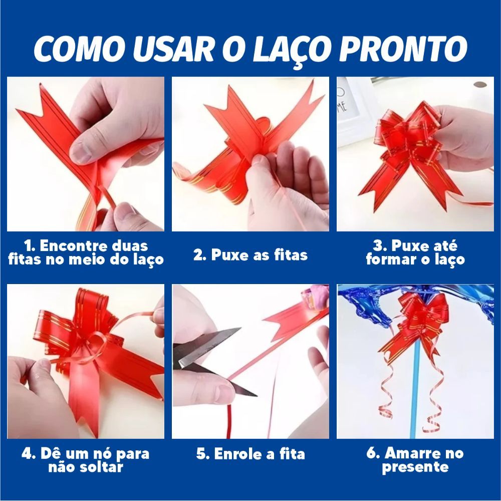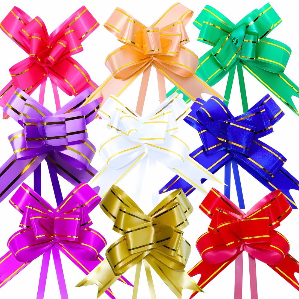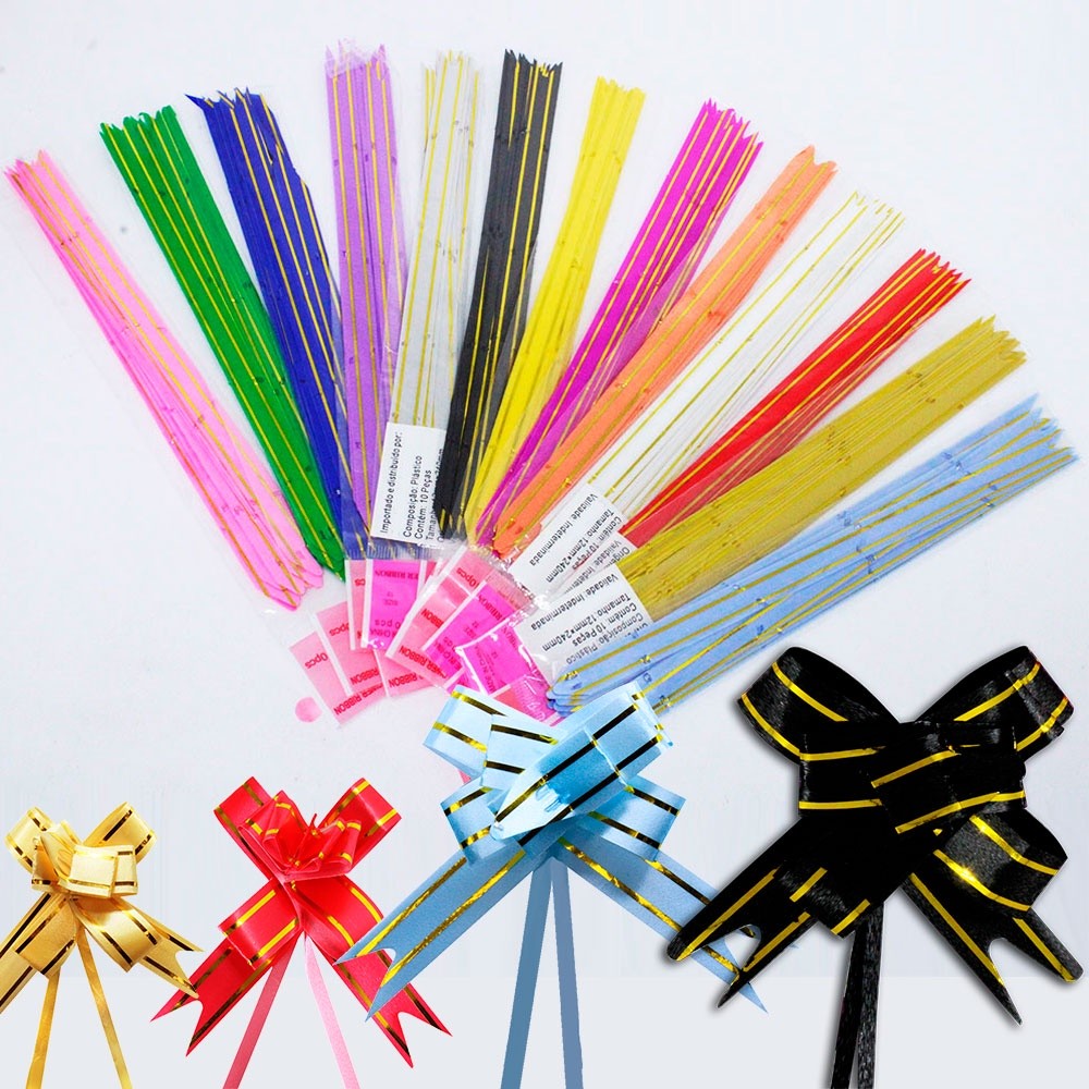 200 Laços Fácil M com Fio Dourado 18mm x 34cm para Presente e Decoração