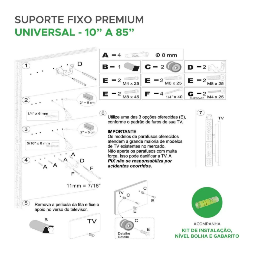 KIT Suporte TV Universal Fixo LED LCD Plasma 10 a 85'' Parede - Painel - Monitor
