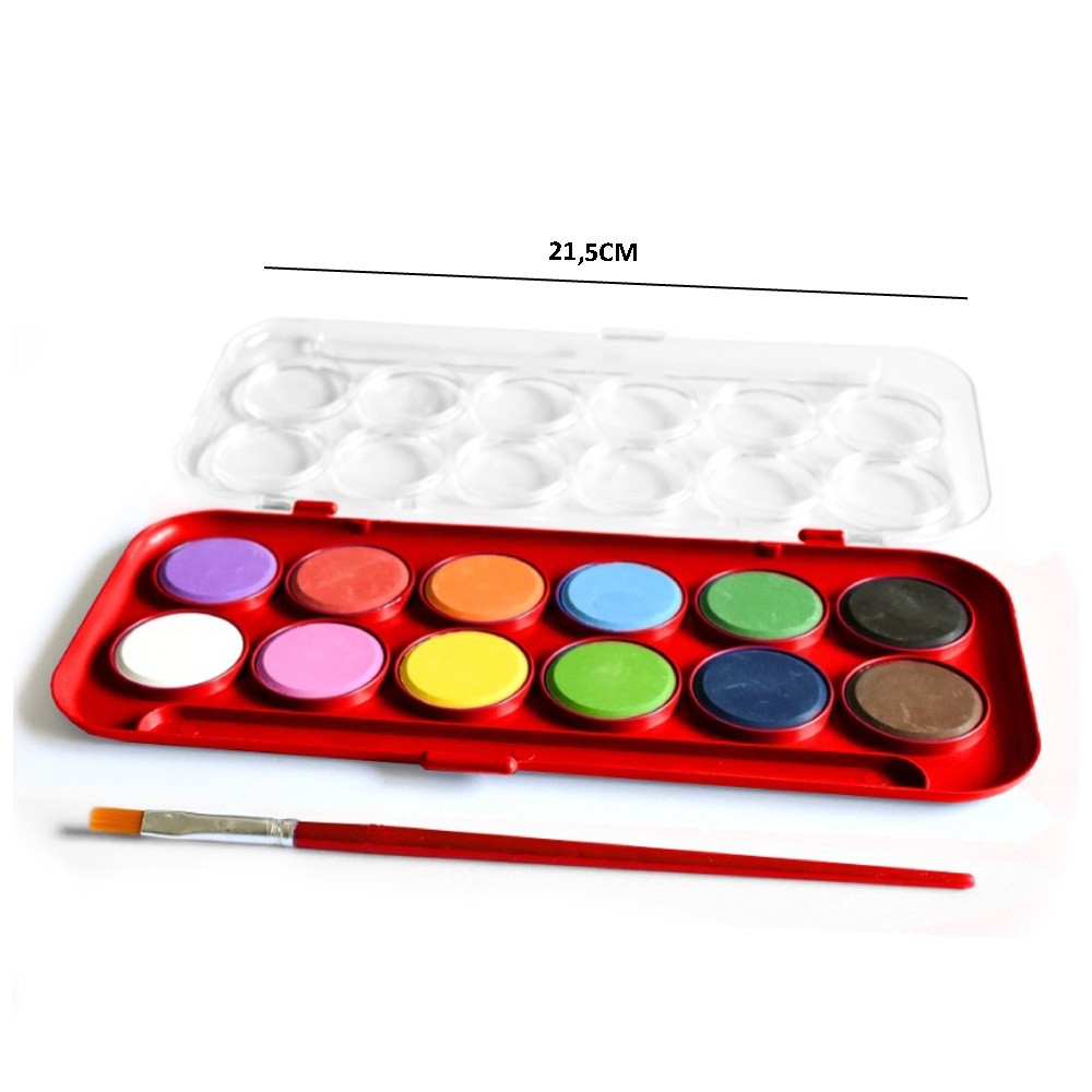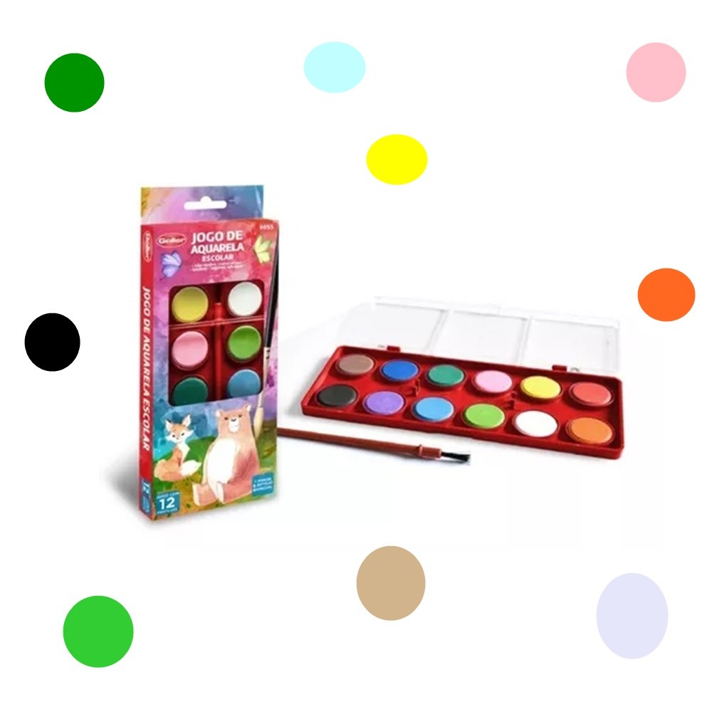 Estojo Jogo Aquarela Pintura 12 Cores Vivas + Pincel Escola