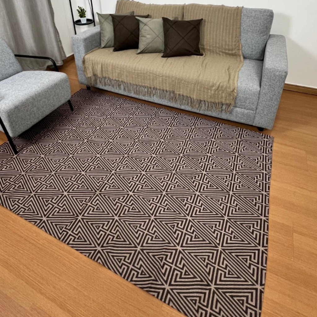 Tapete Jacquard 2,00 m x 1,40 m Antiderrapante Geométrico Sala Escritório Quarto