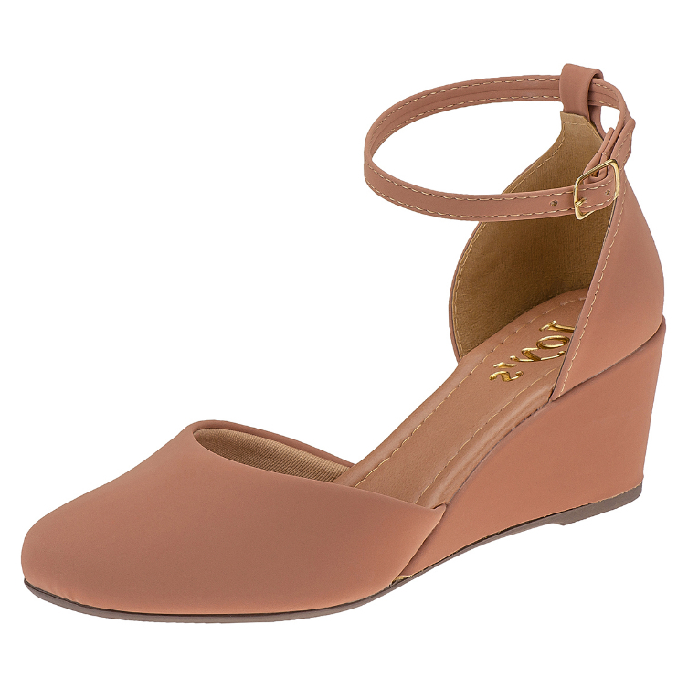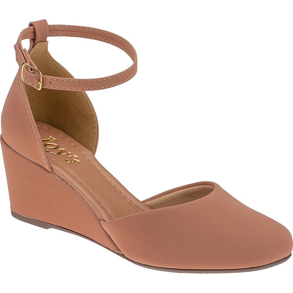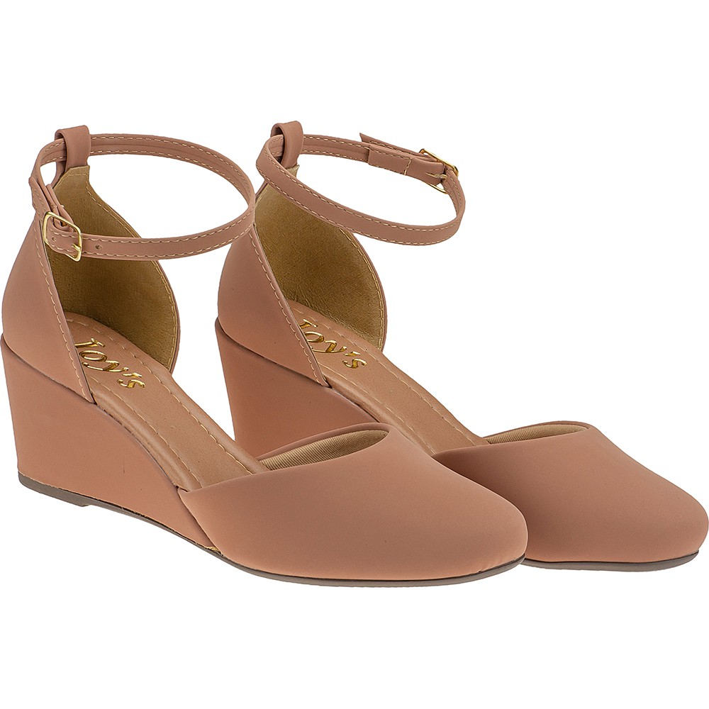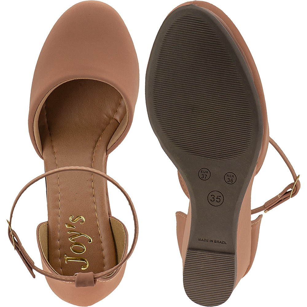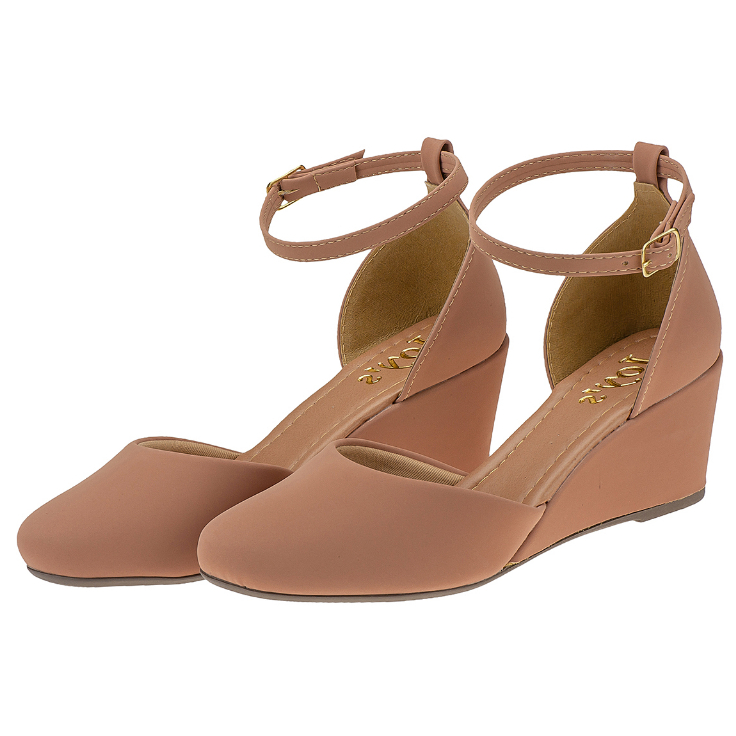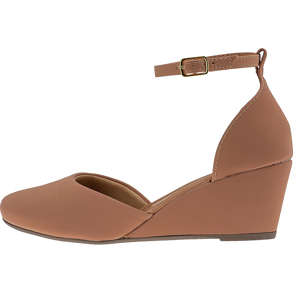 Sandalia Nude Feminina Salto medio Anabela Confortavel 1517