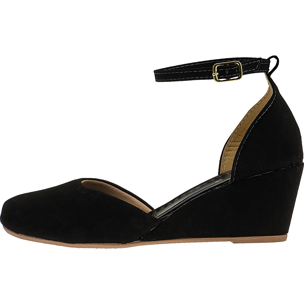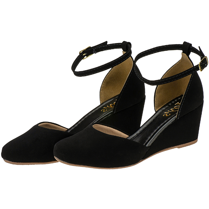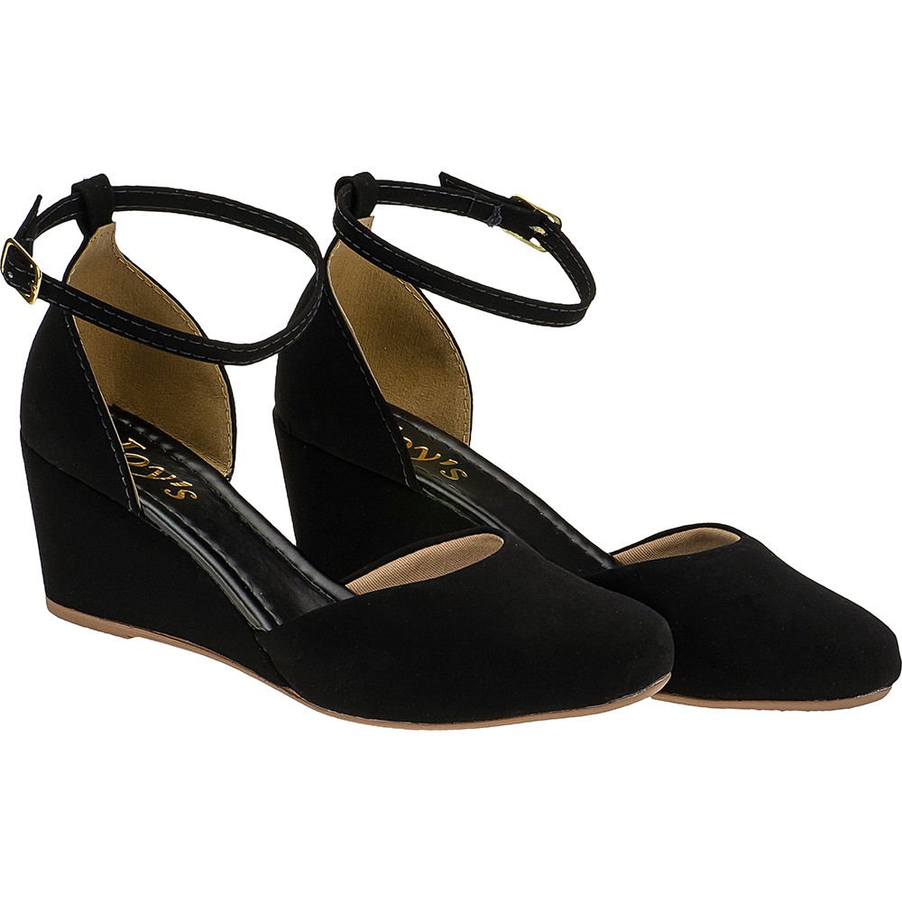Anabela Feminina Preto Sandália Fechada Saltinho Baixo Confortavel 1517