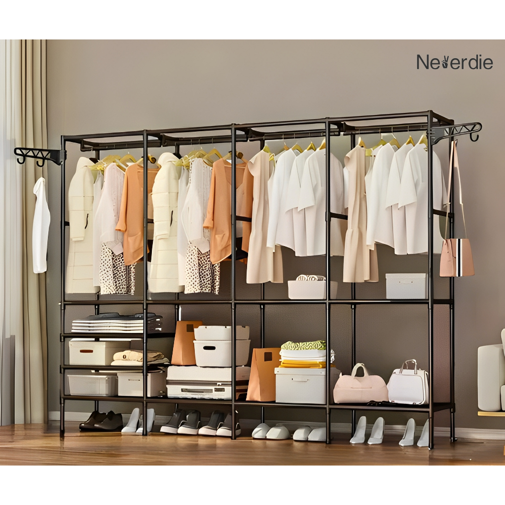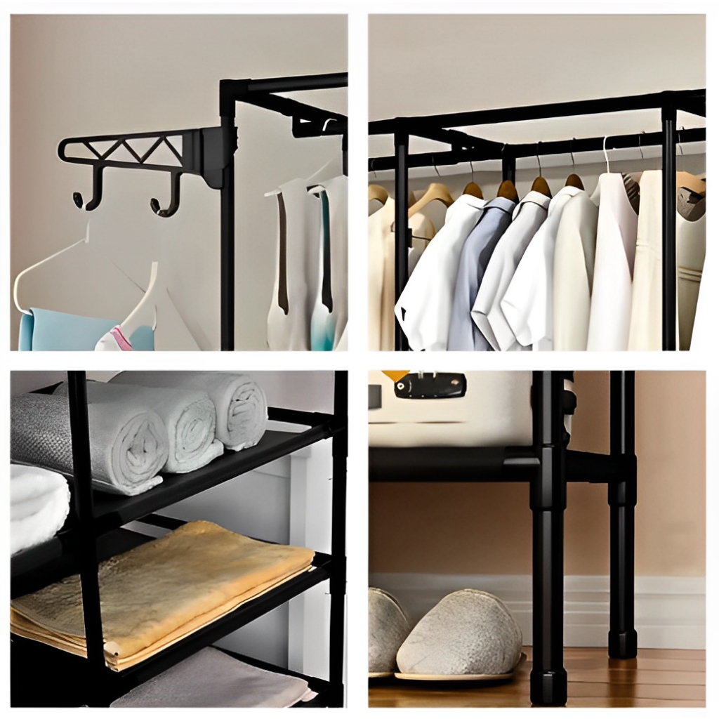 Roupeiro Guarda Roupa Portatil Cabideiro Arara Para Roupas Sapateira Organizador Multiuso Armário 4 Divisórias