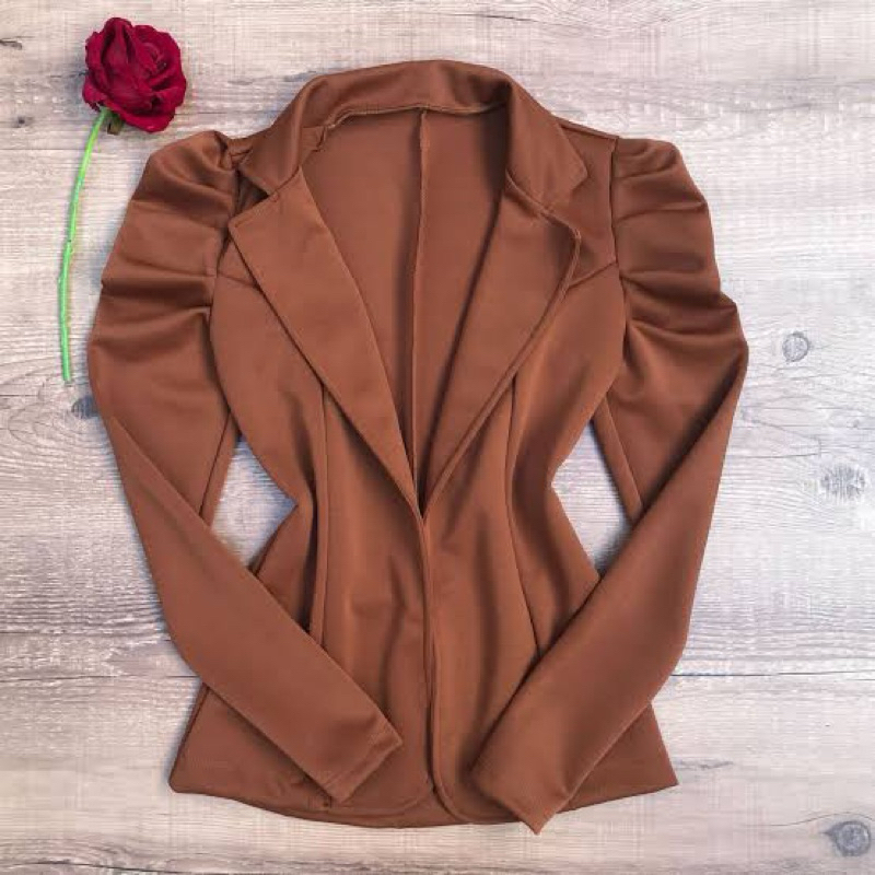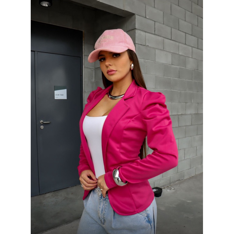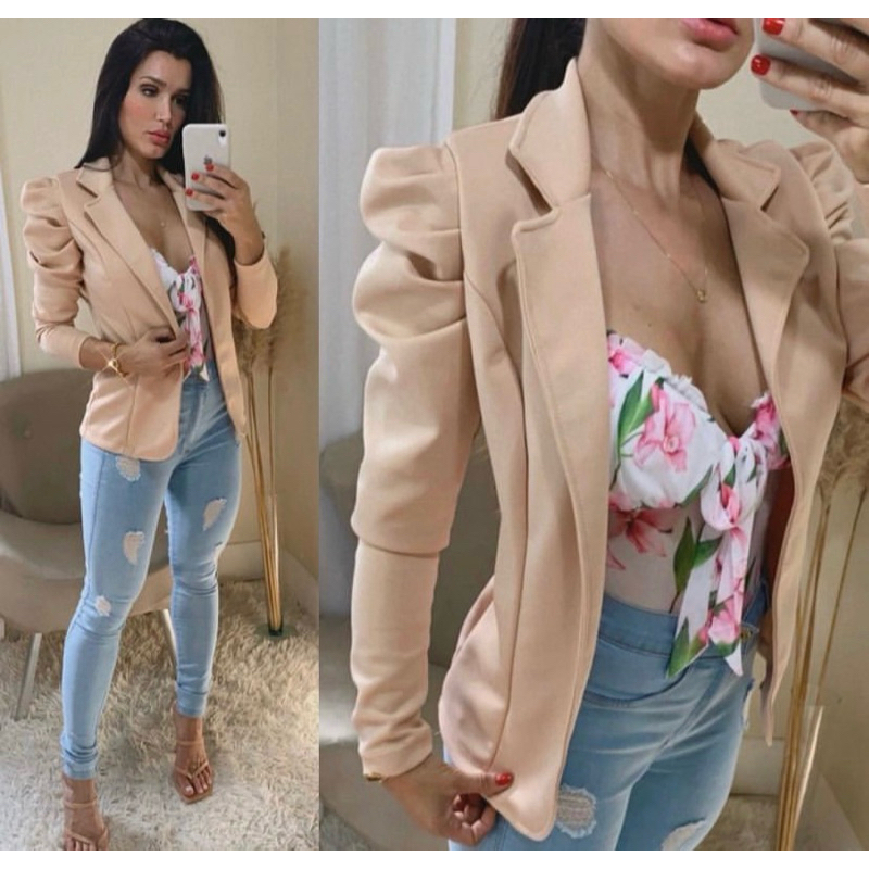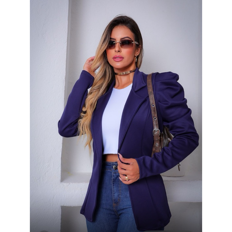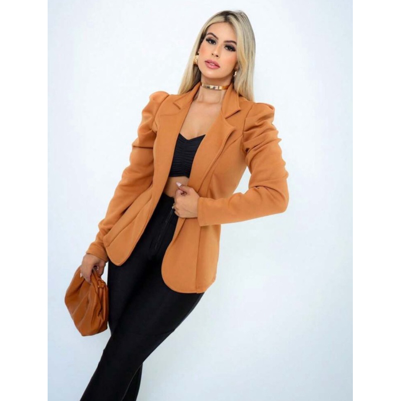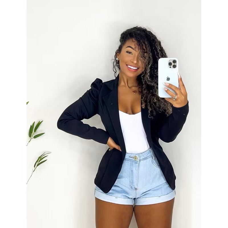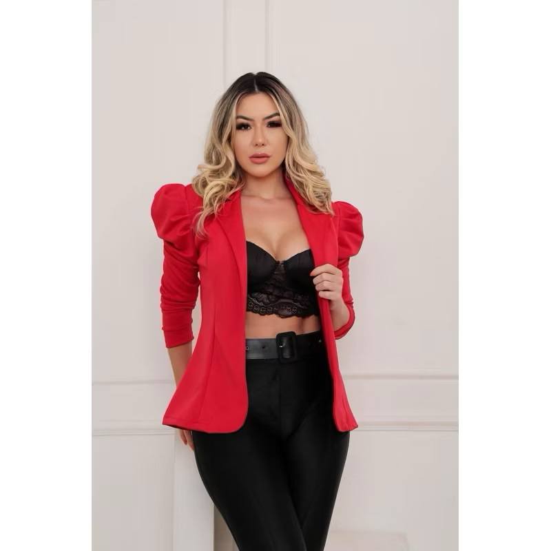 Blazer feminino manga longa princesa casaco acinturado neoprene