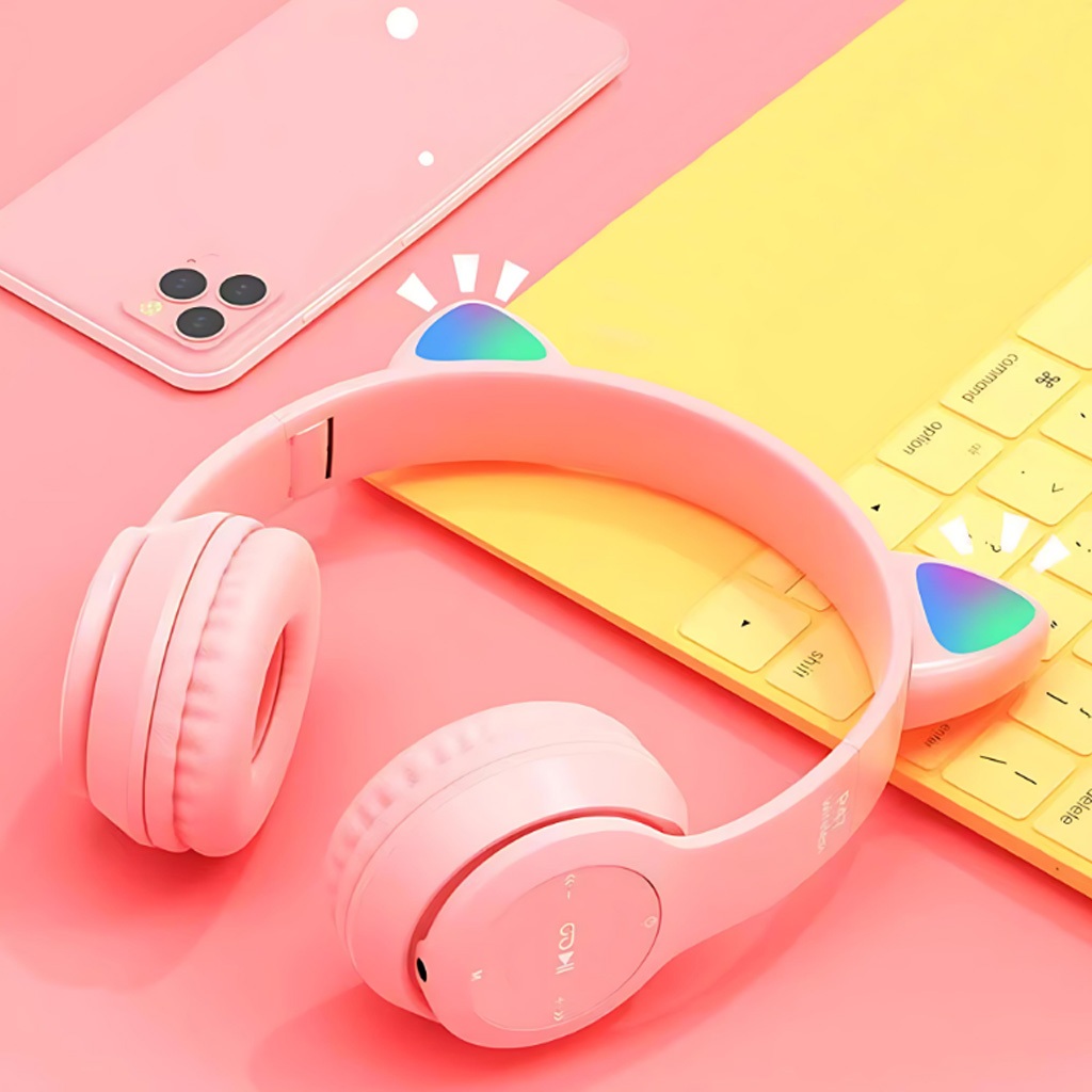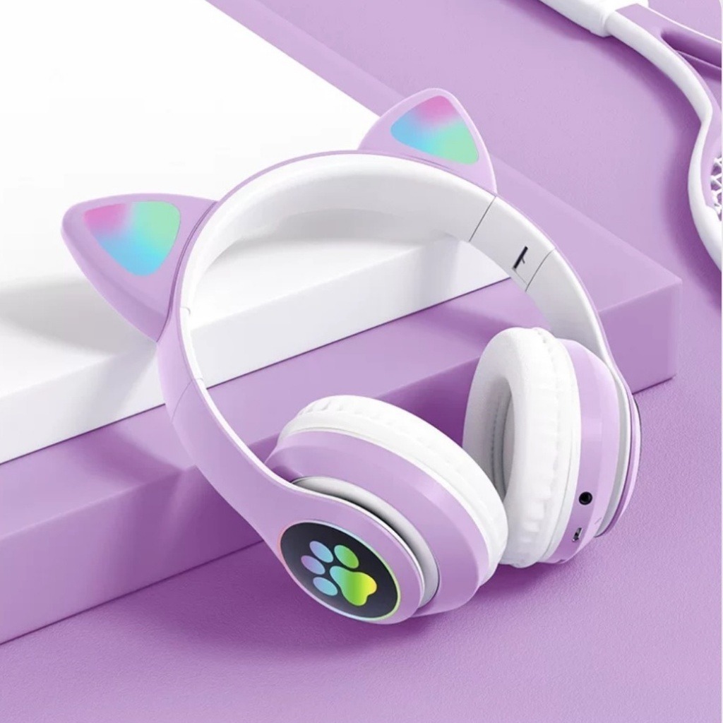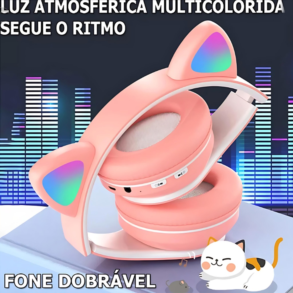 Fone De Ouvido Orelha De Gato Bluetooth Sem Fio Em Luz de LED RGB carinha X2