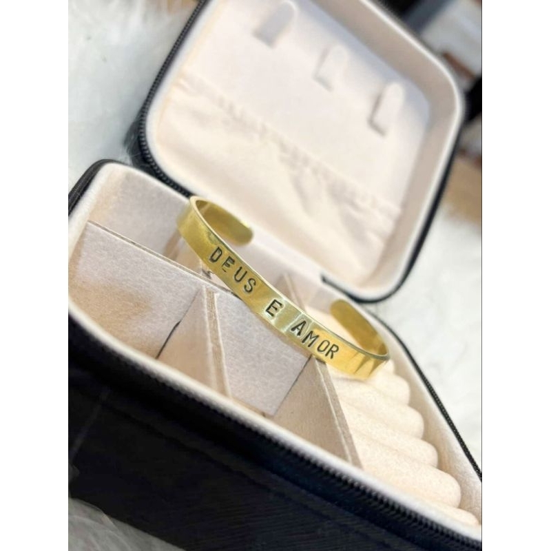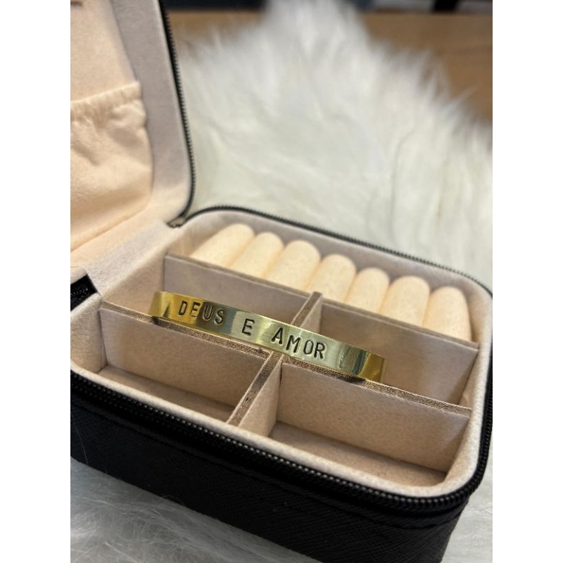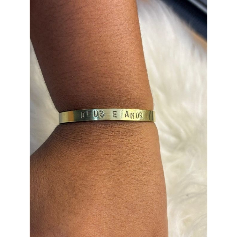 pulseira de latão com gravação feito a mão natural luxo 6mm
