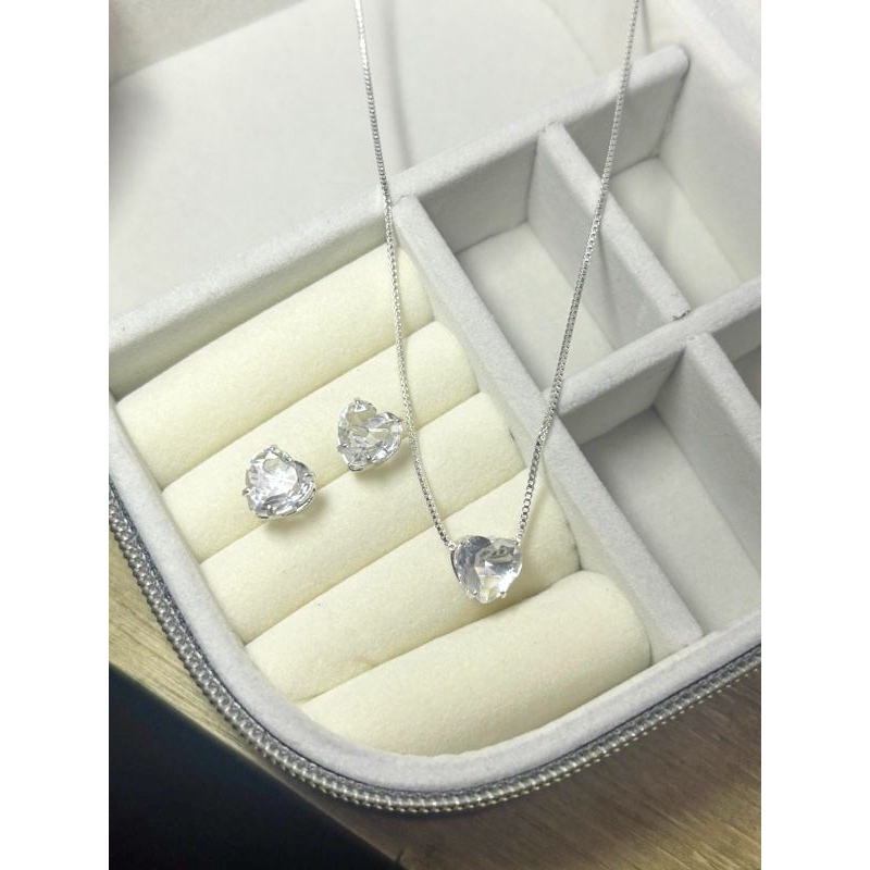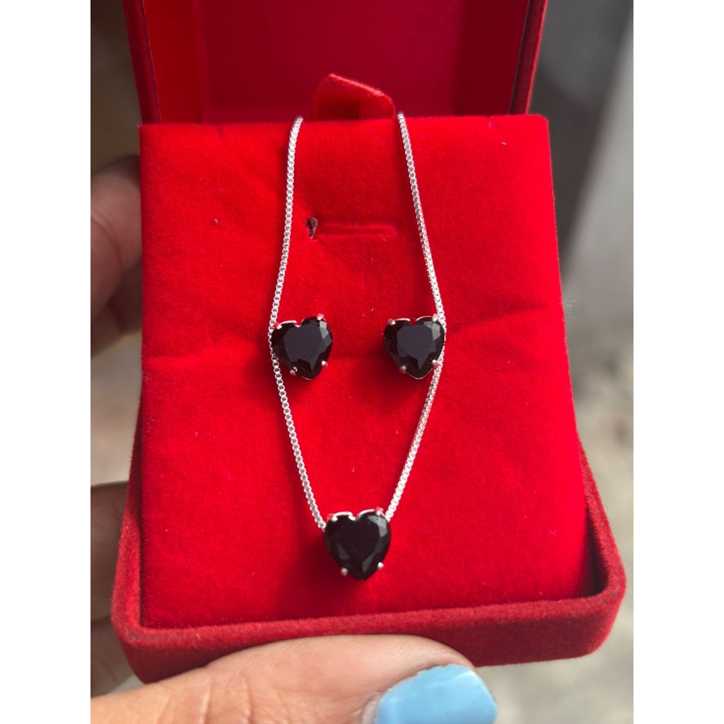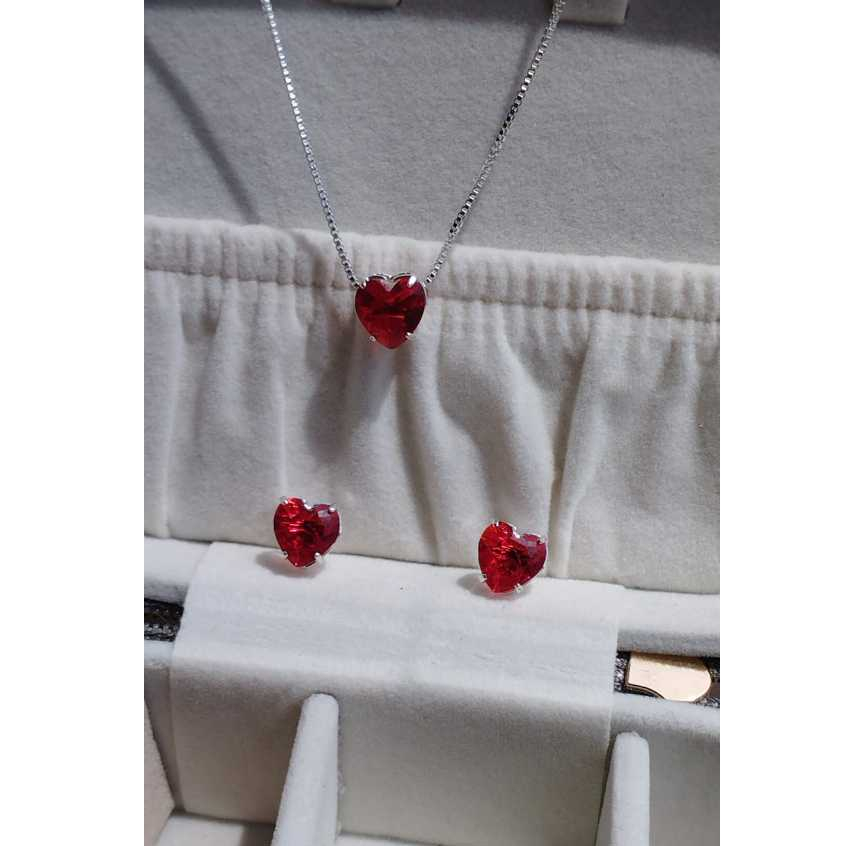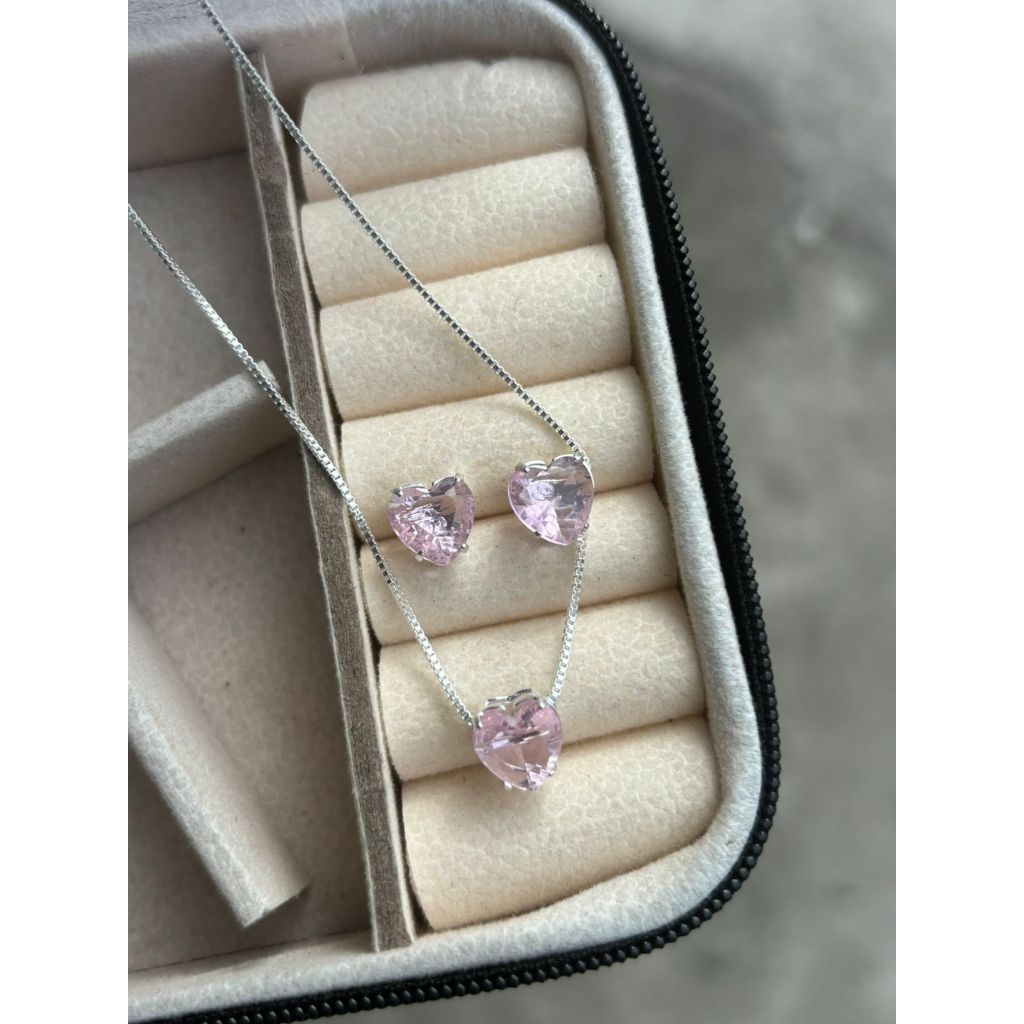 Conjunto Delicado Colar + Brincos de Coração Folheado a Prata 925