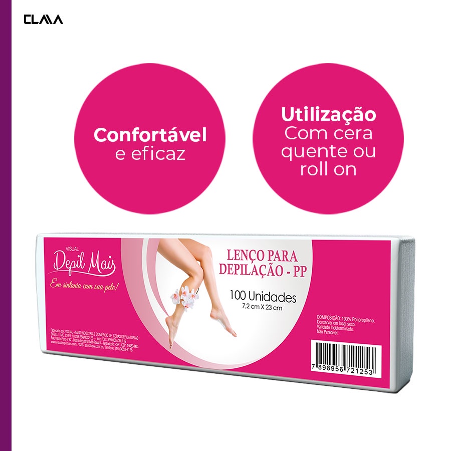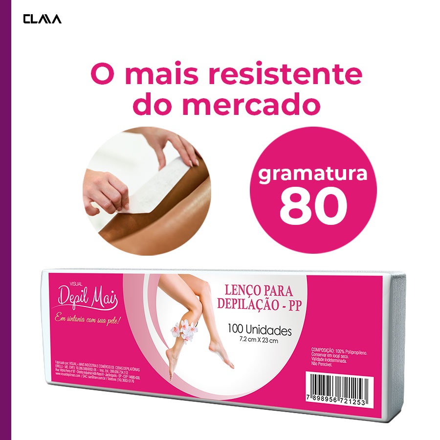 Papel/Lenço Depilatório Tnt - 100 Unidades 7,2cm x 23cm com 80 gramatura