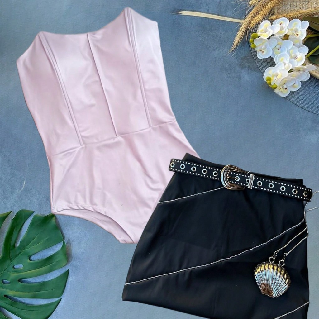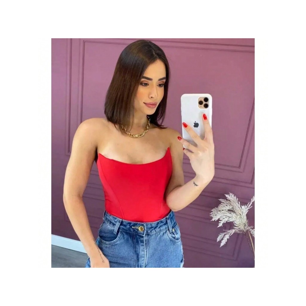 Body Feminino Corset Morcego Tomara Que Caia Com Bojo Cirre Corselet