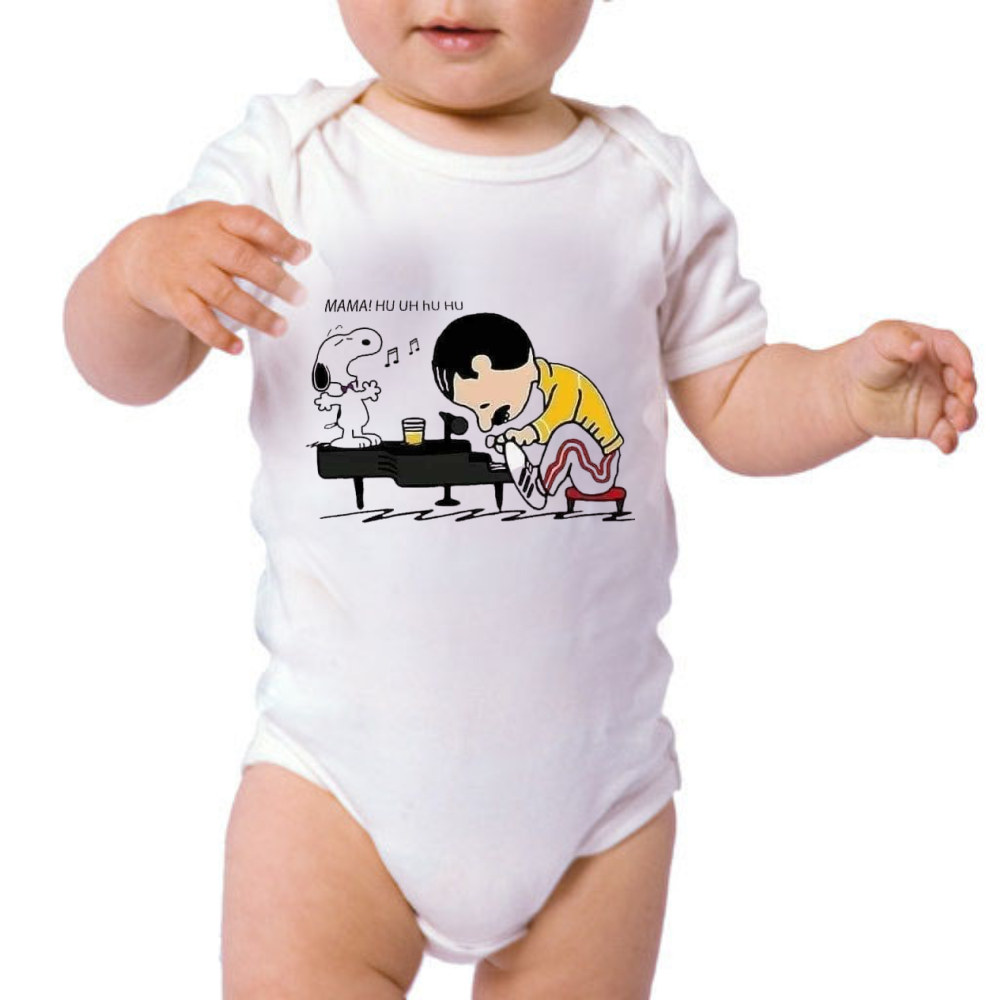 Body de Bebê Temático Mesversário Rock and Roll Banda Freddie Mercury (Branco)