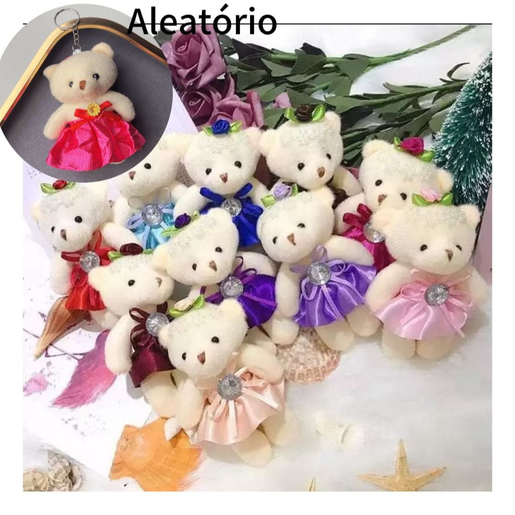 Kit 12 Chaveiros Com Pingente Ursinho Urso De Pelúcia 12cm