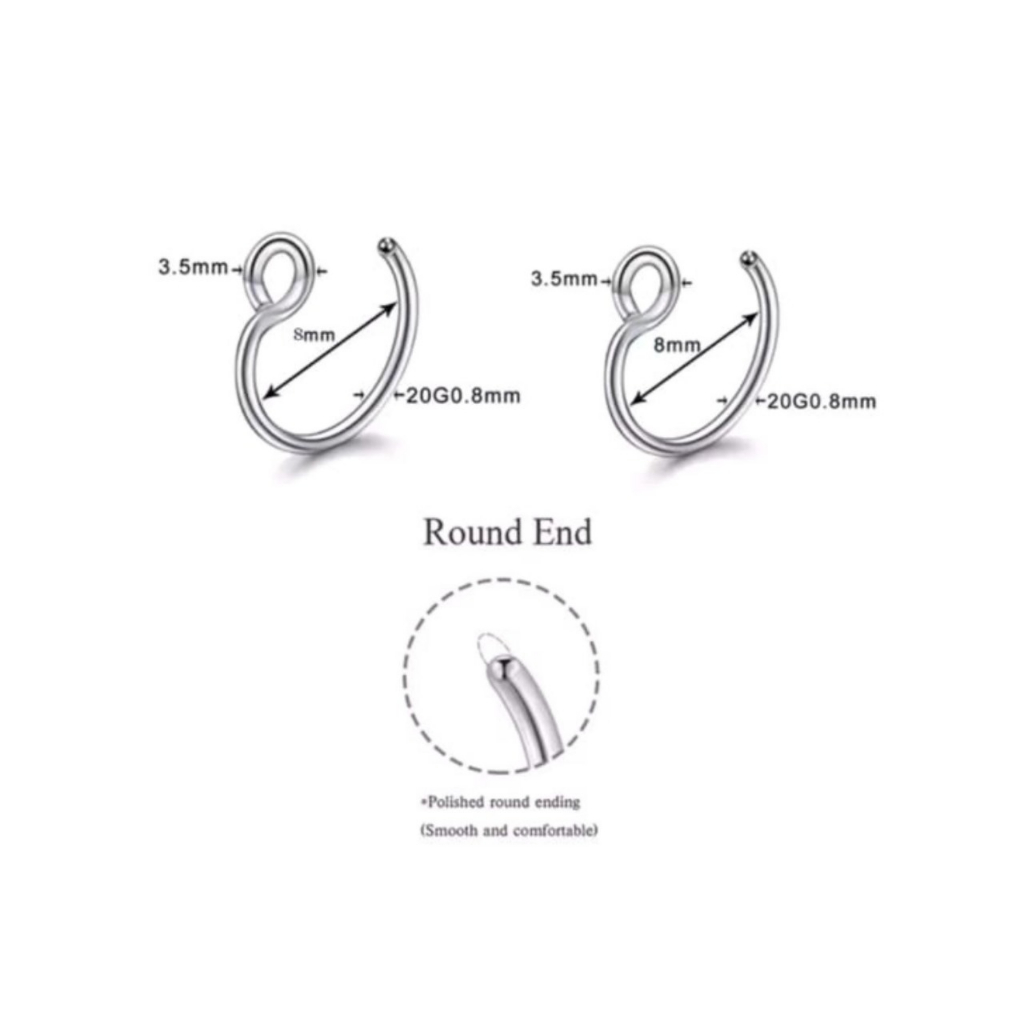 4 Piercing Fake Argola Septo Nasal Falso Aço Inox