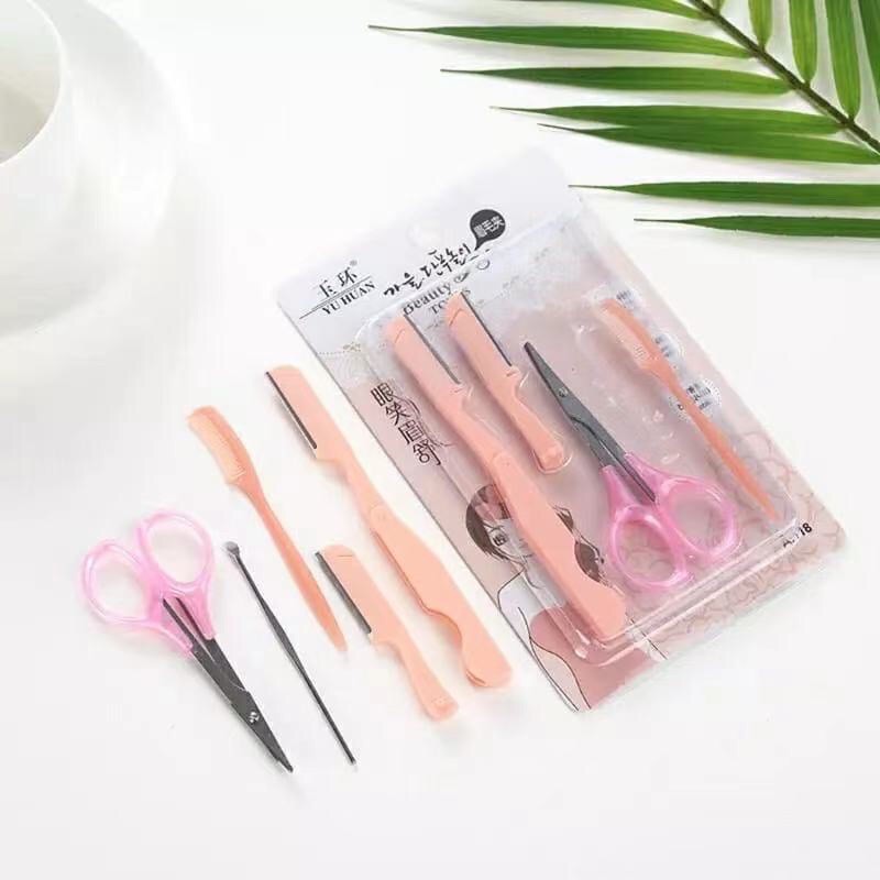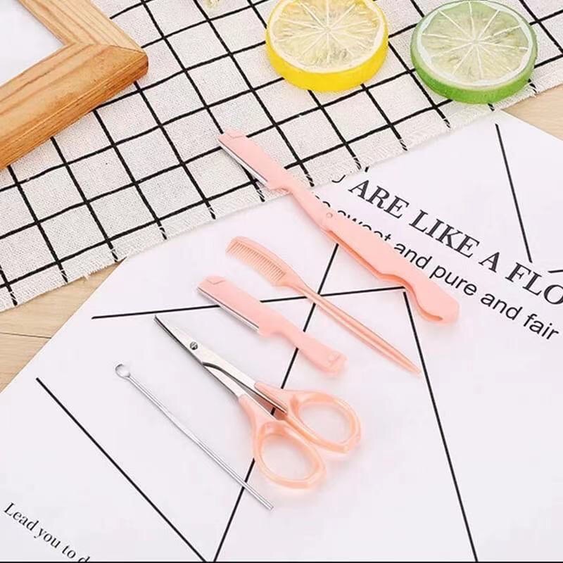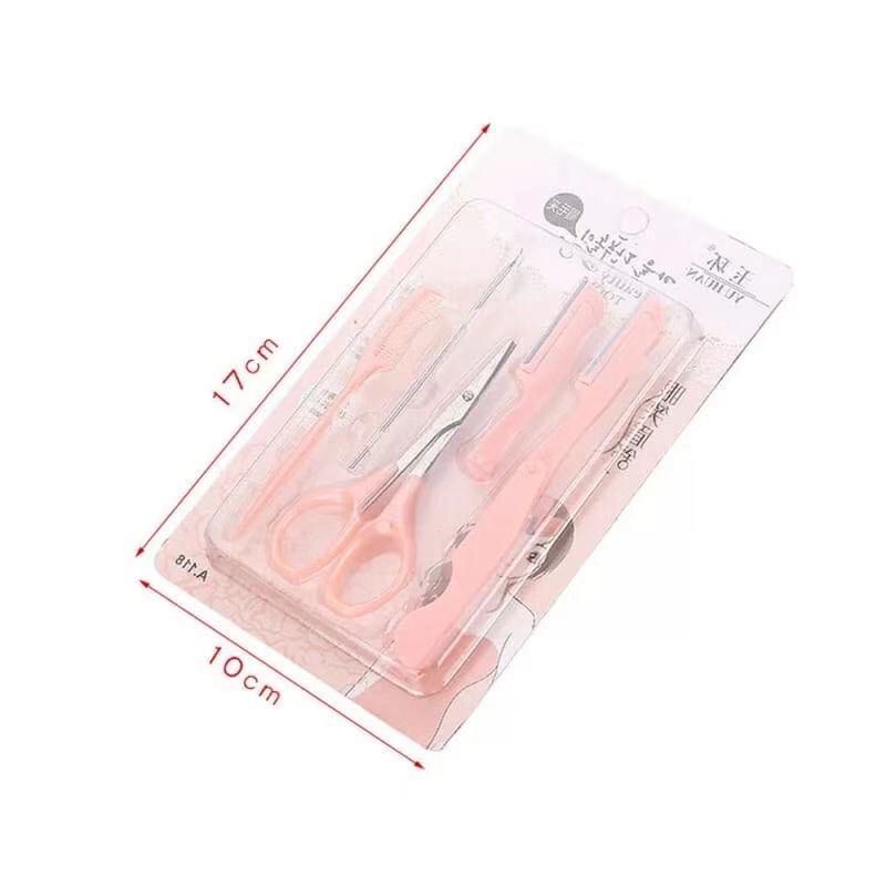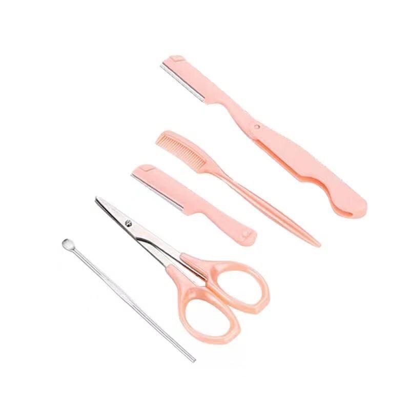 Kit Rosa 5 Peças de Sobrancelhas /Navalha/Tesoura