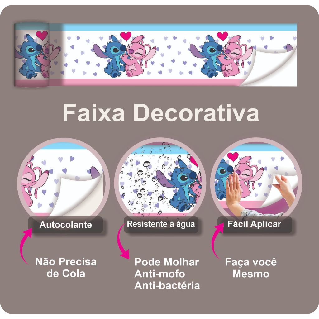 Faixa Decorativa Infantil Stitch Rosa /Azul- Quarto infantil - Adesivo autocolante