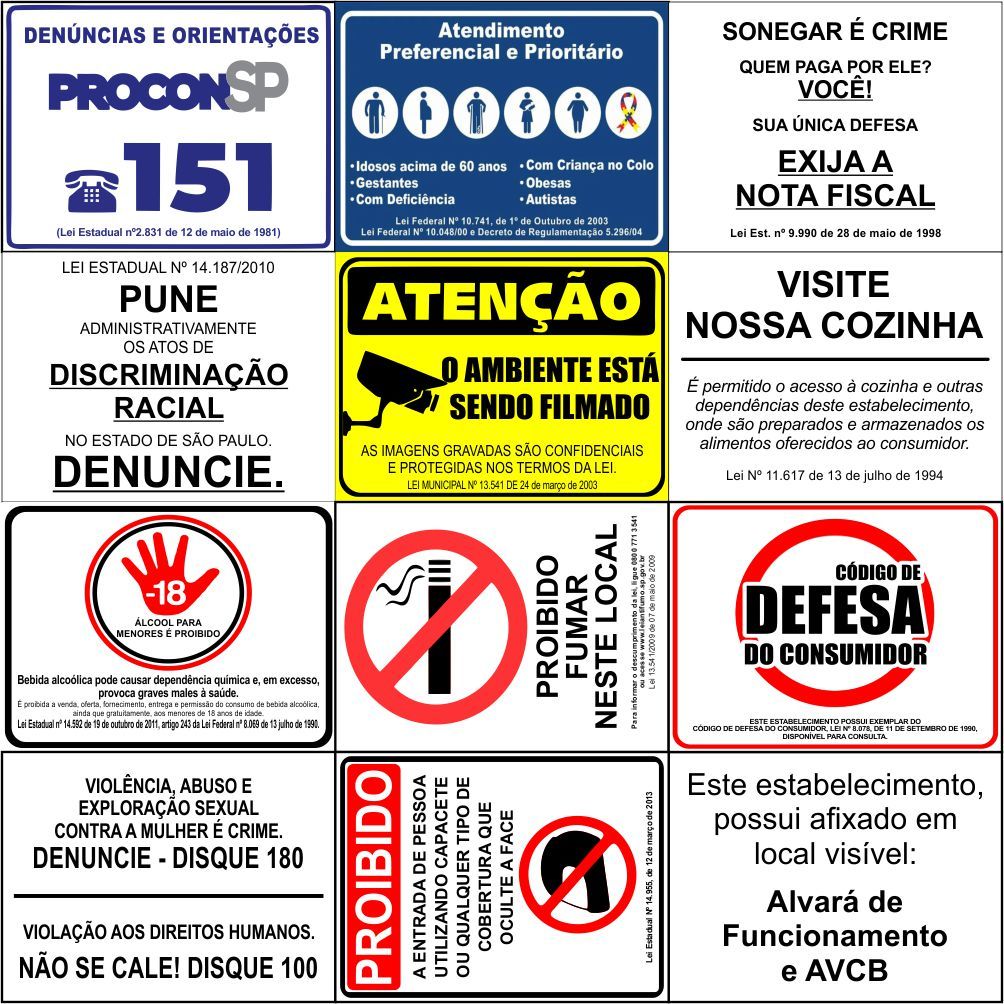 Kit 12 Placas Obrigatórias Para Comércio e Estabelecimento - 20cm x 15cm cada e Espessura de 1mm