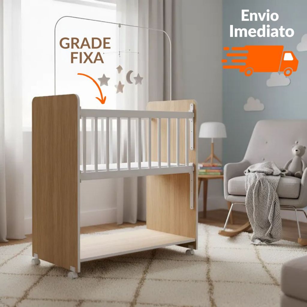 Mini Berço Grade Fixo Colchão Incluso Bebê Moisés FloFlo menino menina