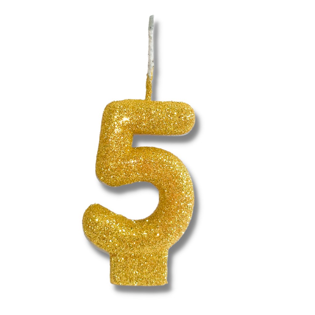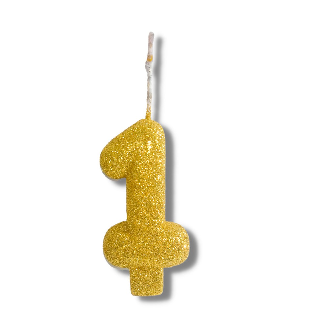 Velas Super Max De Aniversário Dourado - Números + Glitter - 1 Uni FLX001