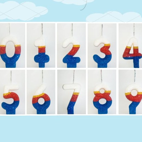 Velas Mix De Aniversário - Números + Glitter - Cores Temáticas - (VARIAS CORES DE GLITTER NA MESMA VELA)
