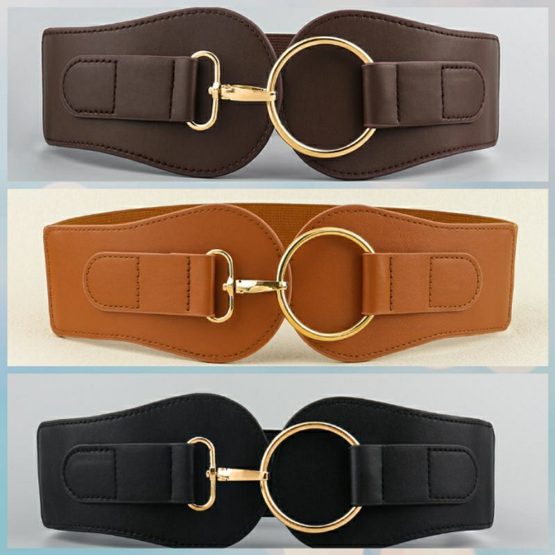 Kit 3 cinto Largo Elástico Feminino -Couro PU Ajustável Estiramento Emagrecimento Ajuste Cintura