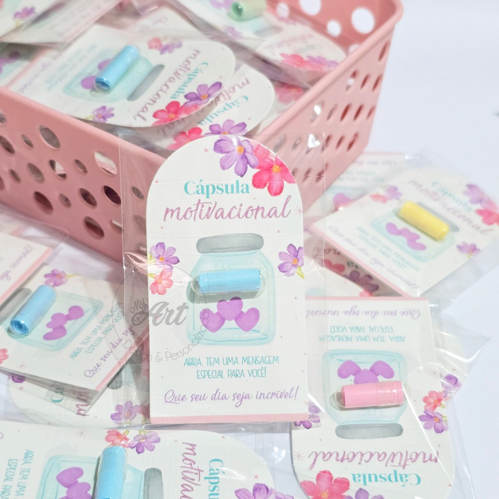 Cartão motivacional cápsula mimo pílula brinde diferente - surpreenda seu cliente