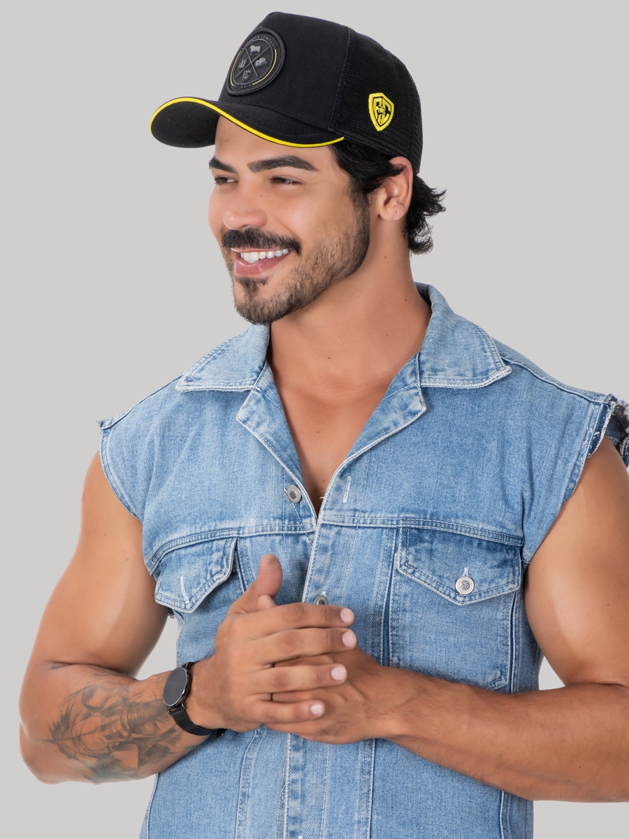 Boné Trucker Telinha Country Masculino e Feminino Preto Pecuária Modão Peão