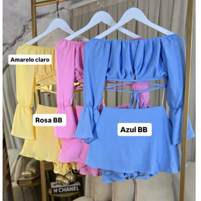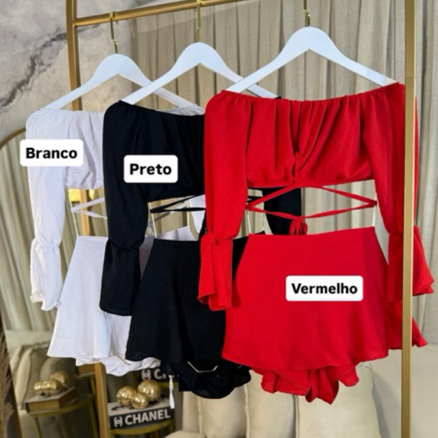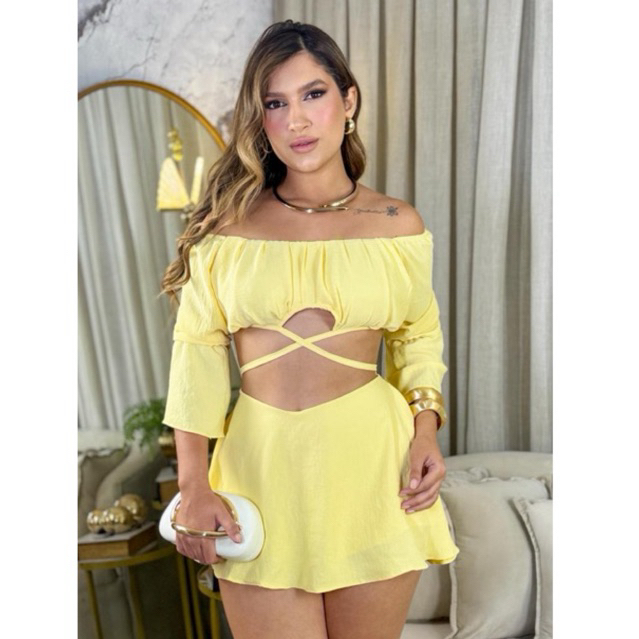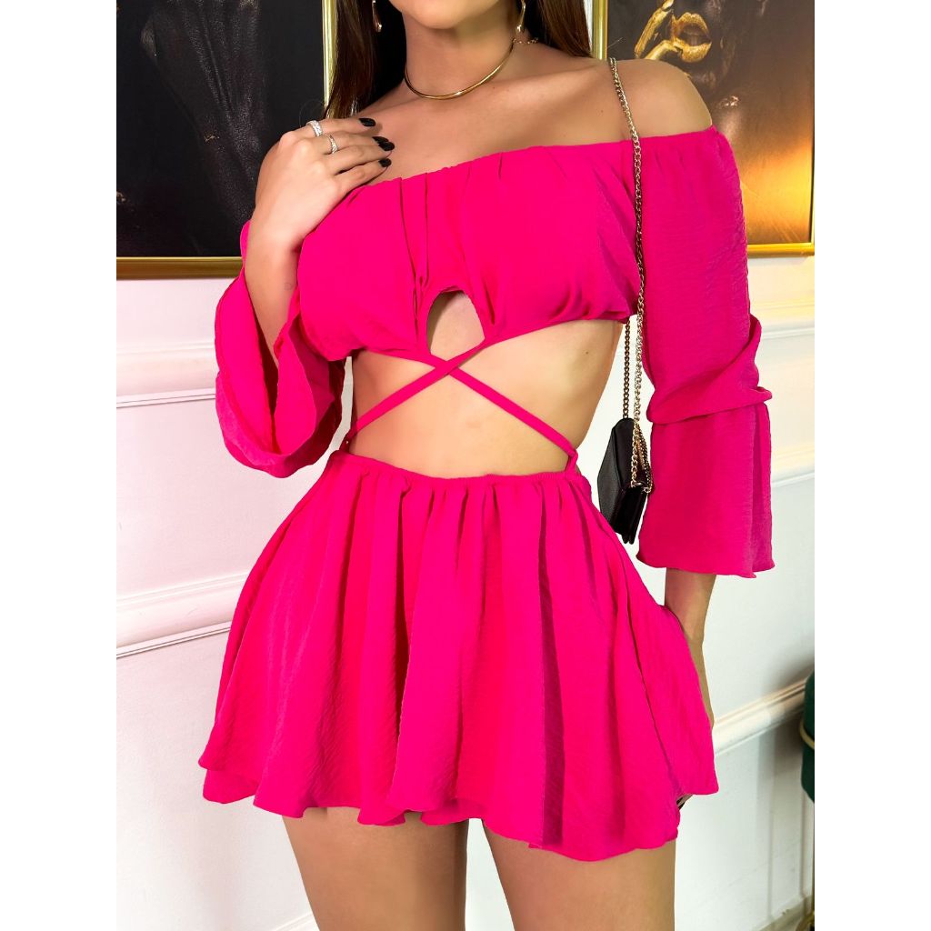 Conjunto Evyla short saia rodado gode e cropped manga longa varias formas de uso manga longa Ciganinha Verão Carnaval