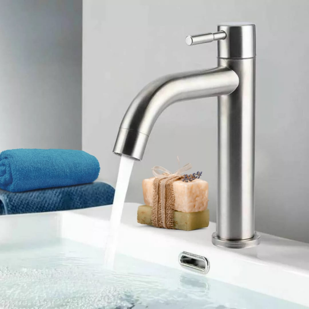 Torneira Aço Inox Escovado Lavatório Mesa Baixa 1/4v