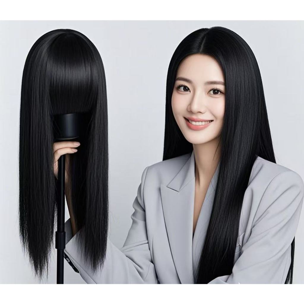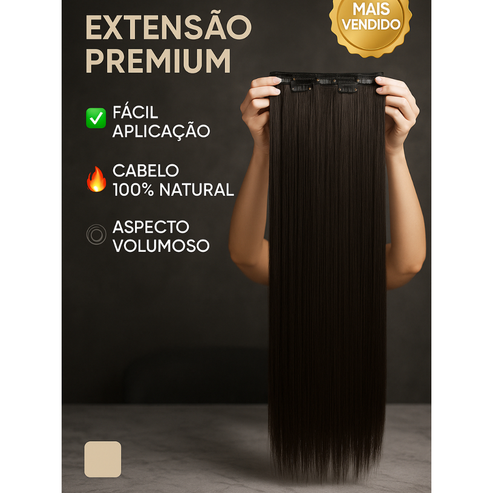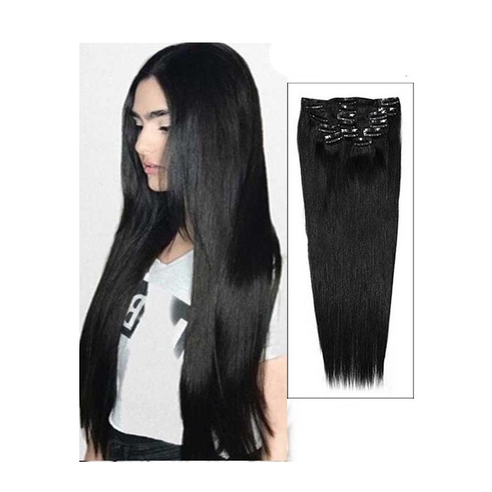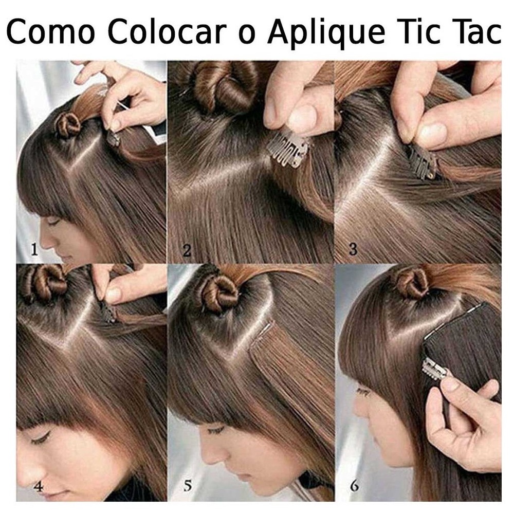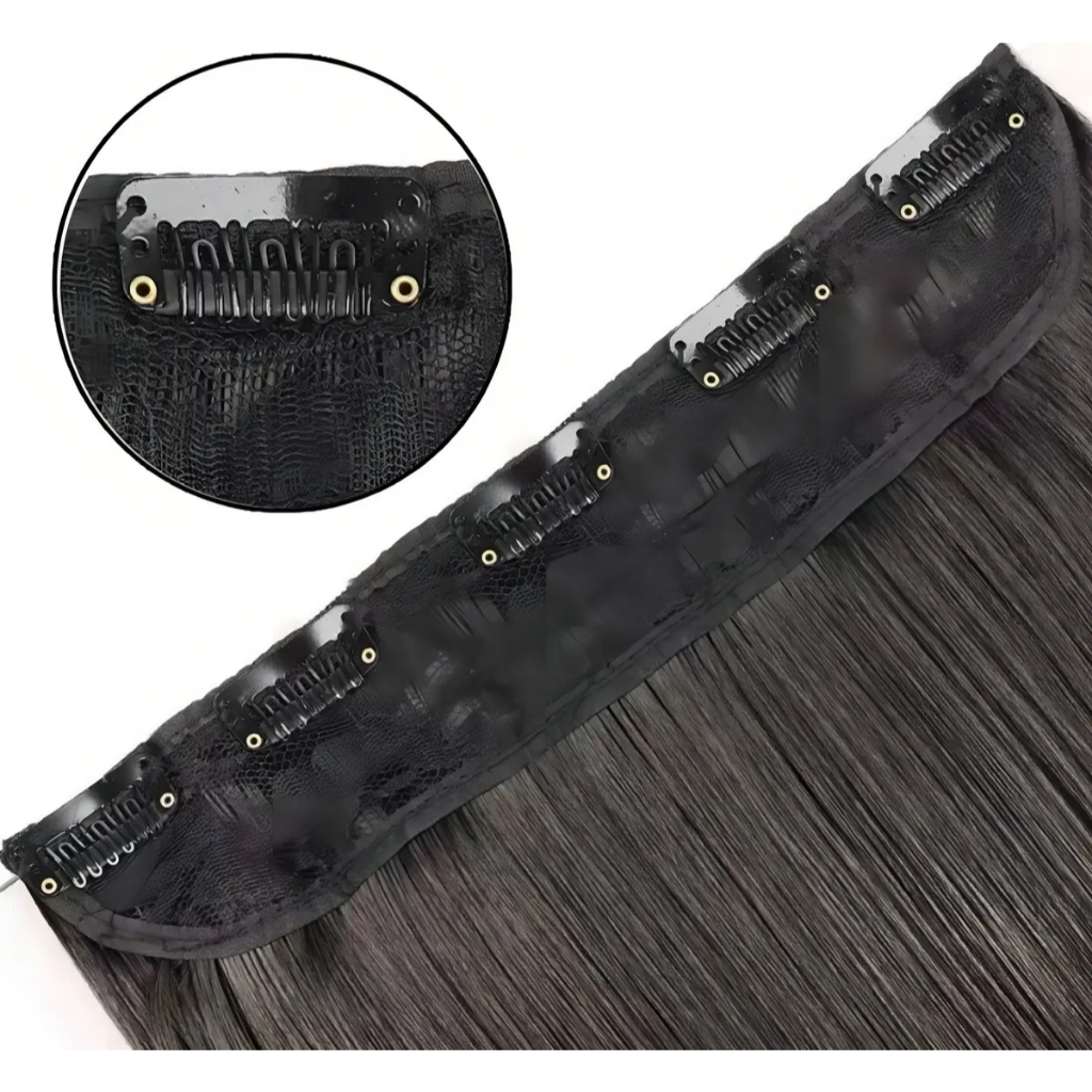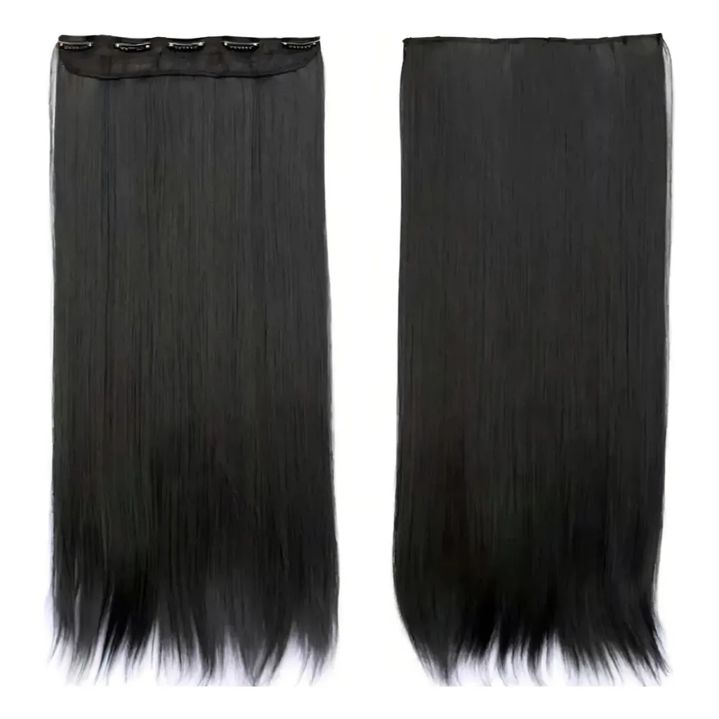 Extensão de Cabelo Preto em Fibra Orgânica Wig Liso Com Aplique Tic Tac Para Volume