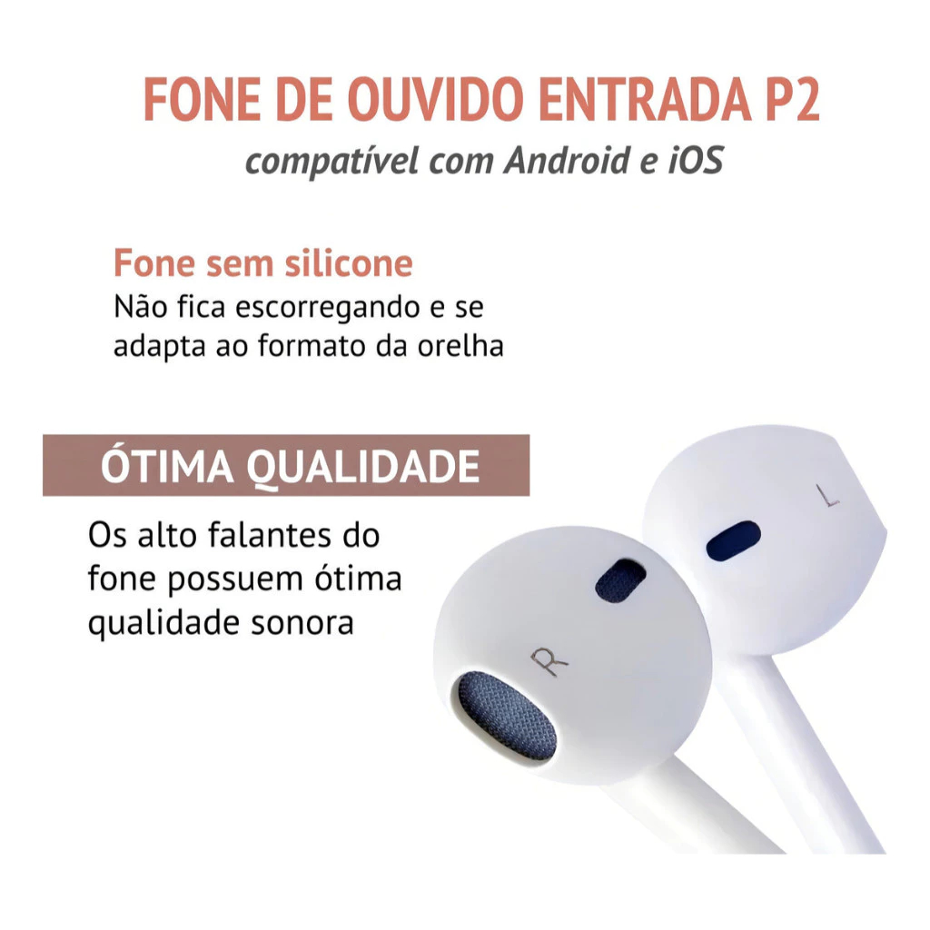 Fone de ouvido com P2 3.5mm e Microfone Para Celular Notebook Funciona com iPhone (2G ao 6S Plus)