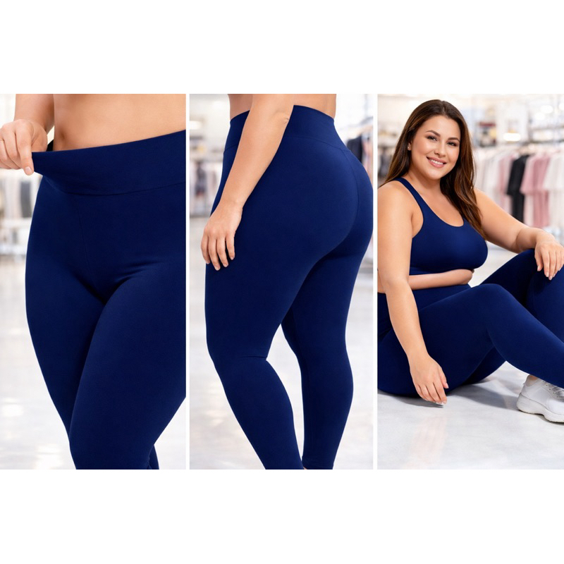 Legging Azul Marinho Plus Size GG G1 G2 G3 Cintura Alta Suplex Zero transparência Academia