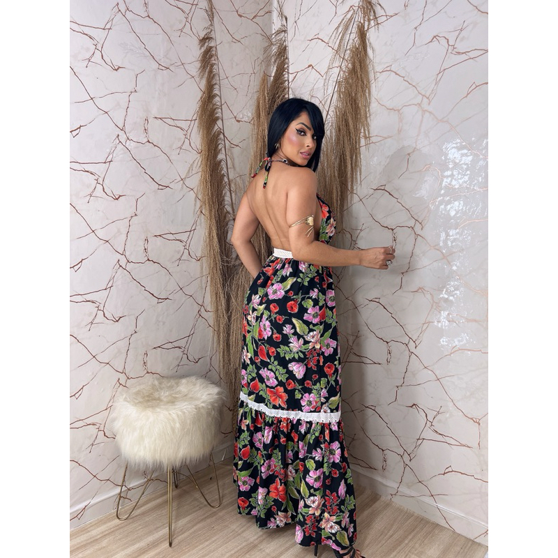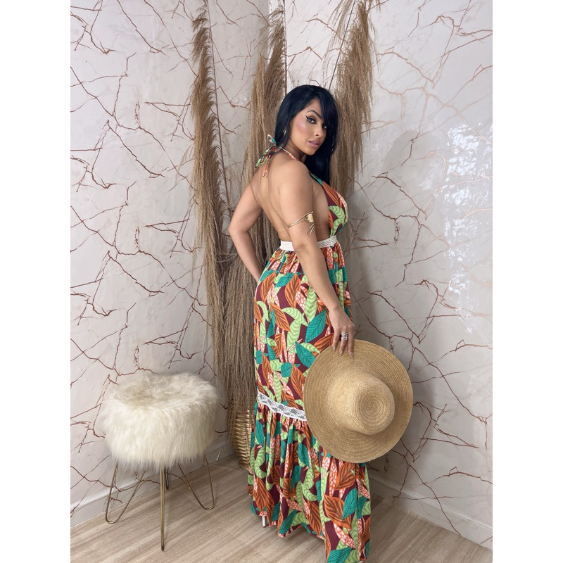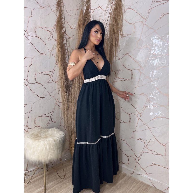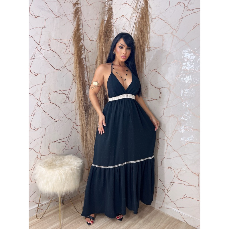 Vestido Longo Com Detalhe Lindo Elástico Rústico Trabalhado Vestido de Festa Longo Vestido Elegante