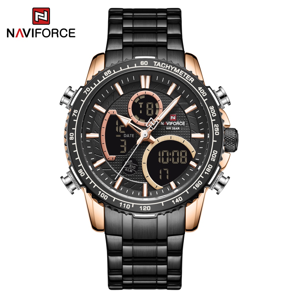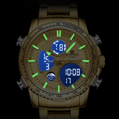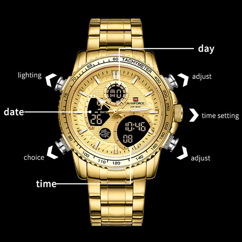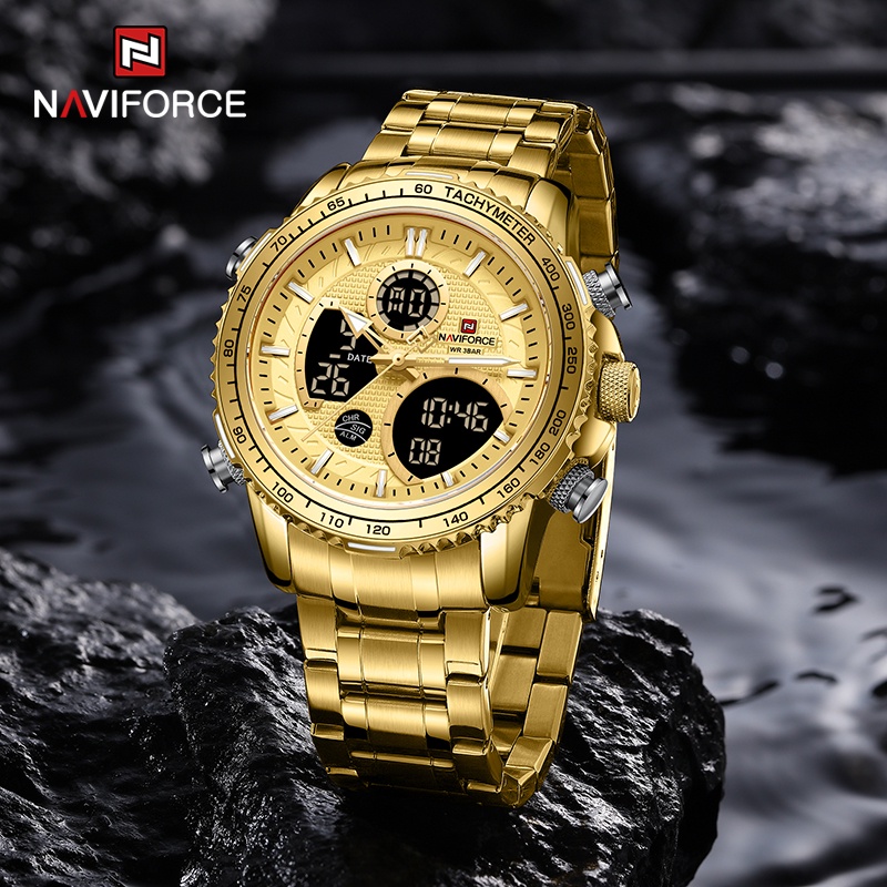 NAVIFORCE 9182 Fashion Man Gold Watches Luxury Casual Analog Digital Quartz Pulseira De Aço Inoxidável Para Homens