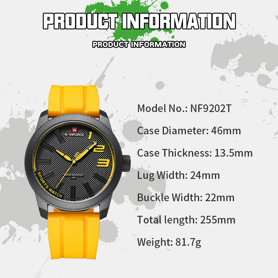 Relógio De Pulso NAVIFORCE 9202T Homem Marca Top Militar Esportivo À Prova D'água Masculino Fashion Silicone Strap Quartz