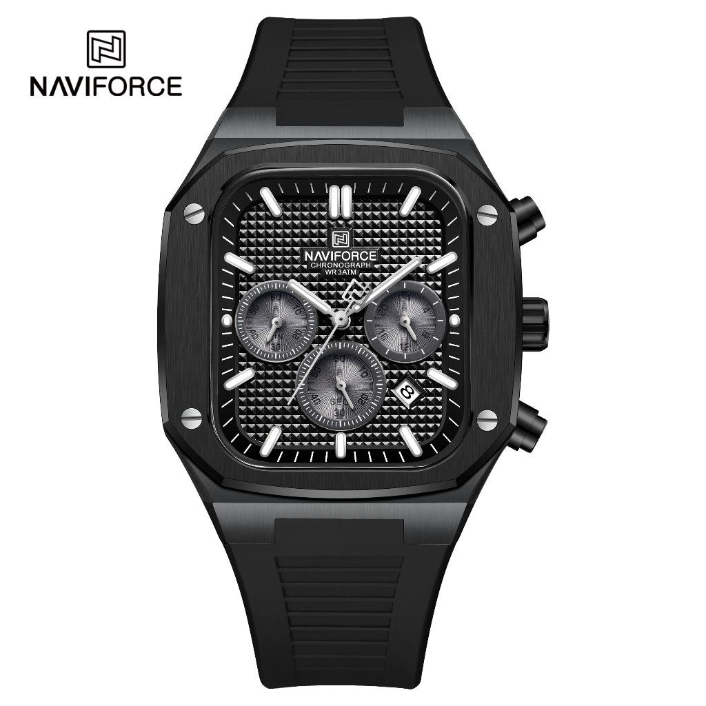 NAVIFORCE 8037 Homens Observam Postos De Moda De Negócios Gold Silicone Strap Wristwatch Cronógrafo Multifuncional Relógio Luminoso À Prova D'água
