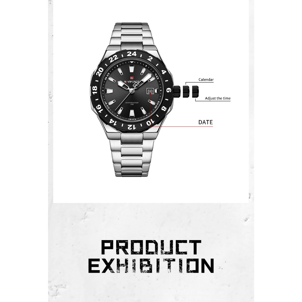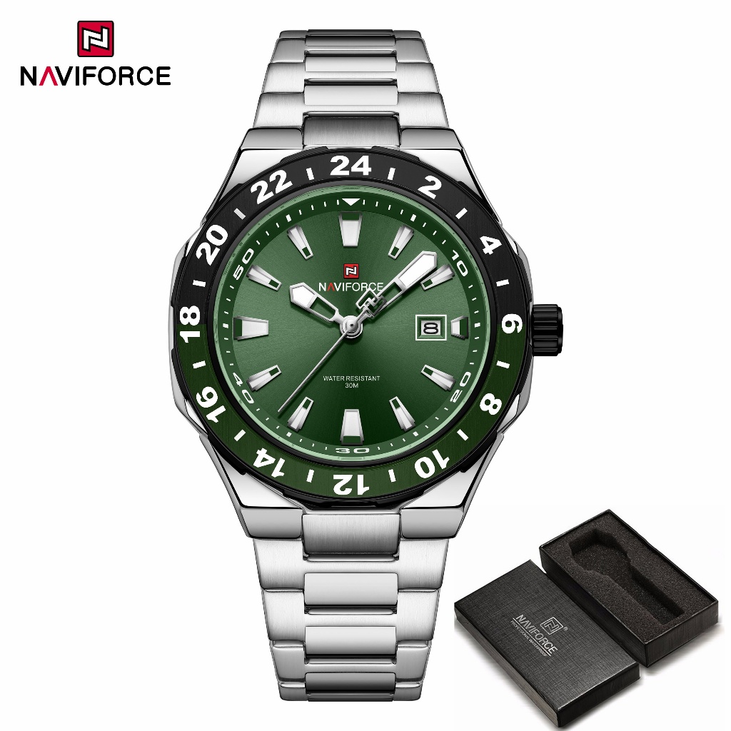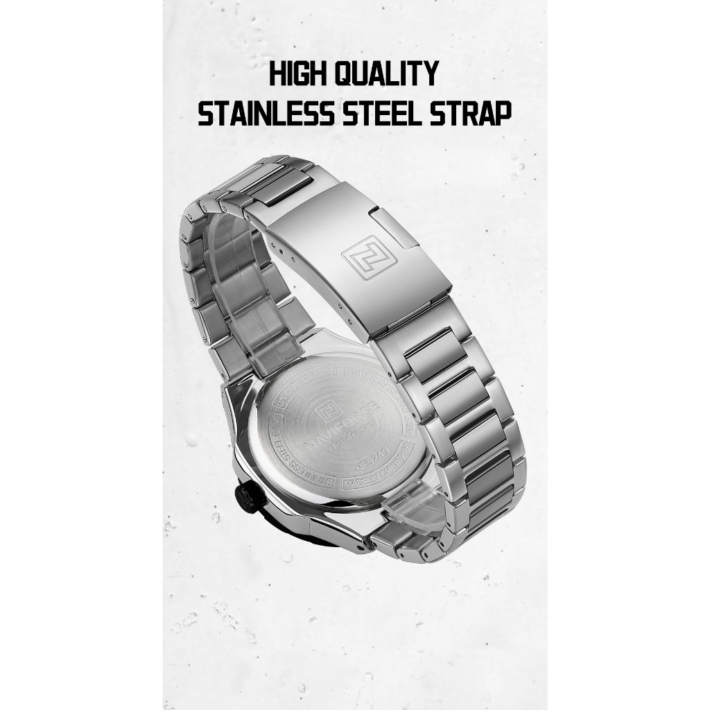 NAVIFORCE 9249 Mostrador Em Escala Masculino Com Função De Calendário Relógio Pulseira De Aço Inoxidável