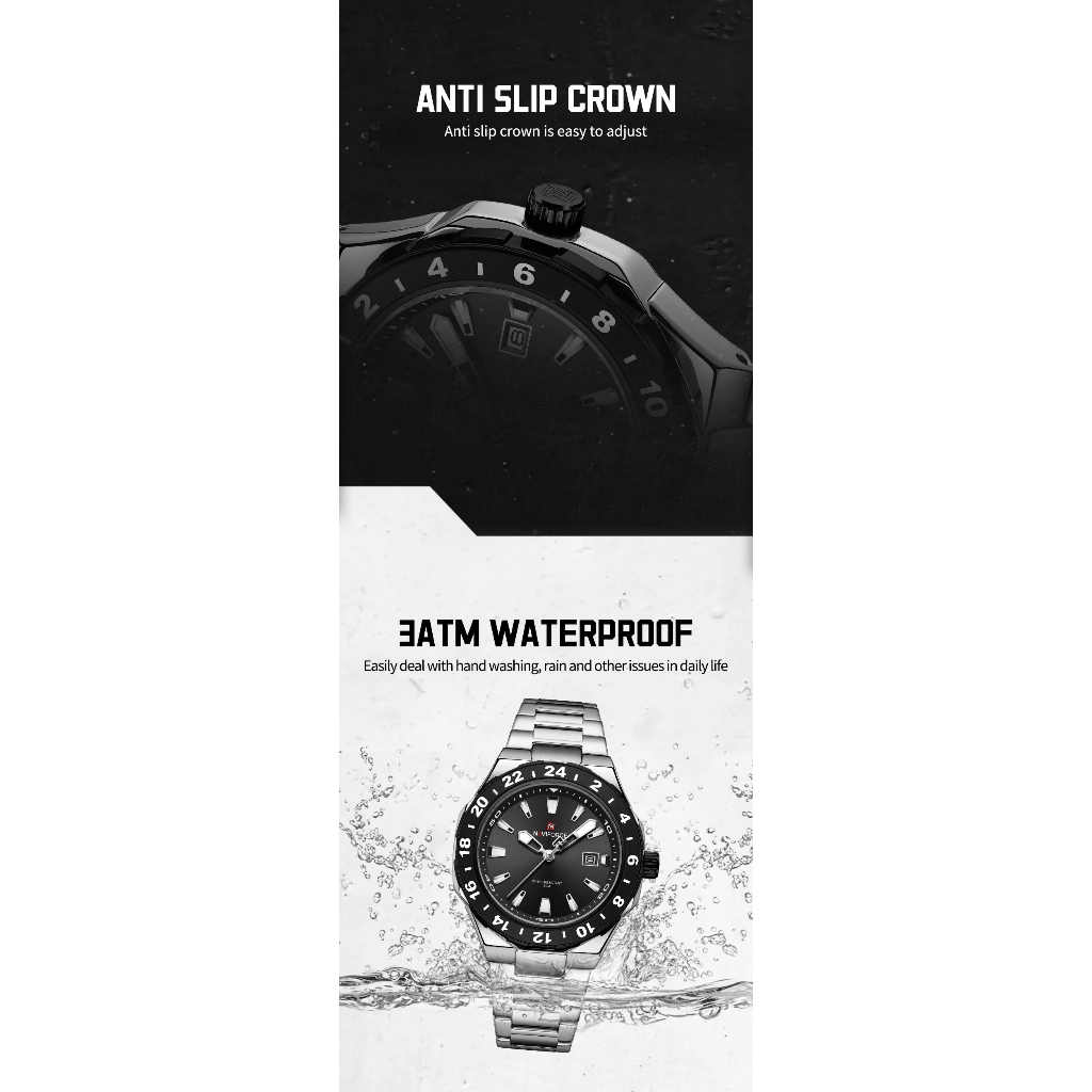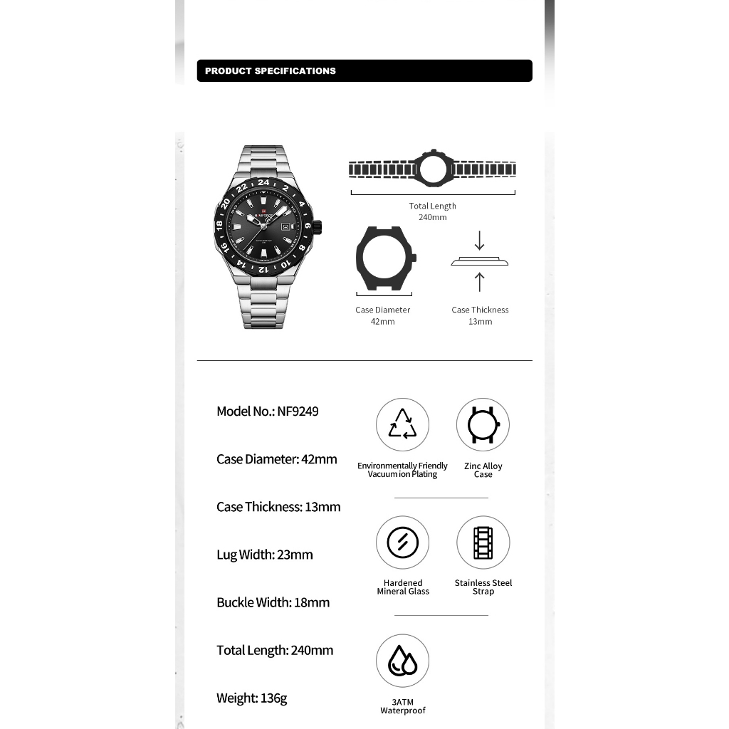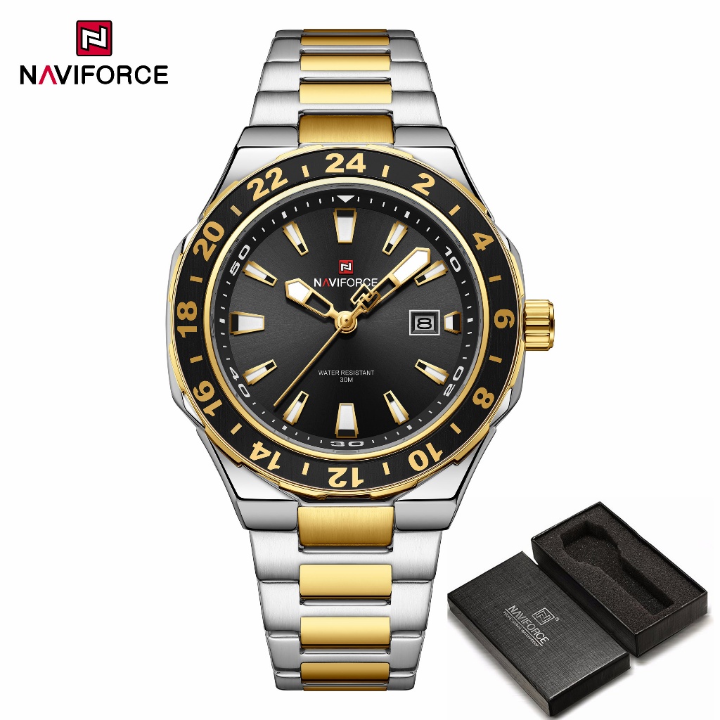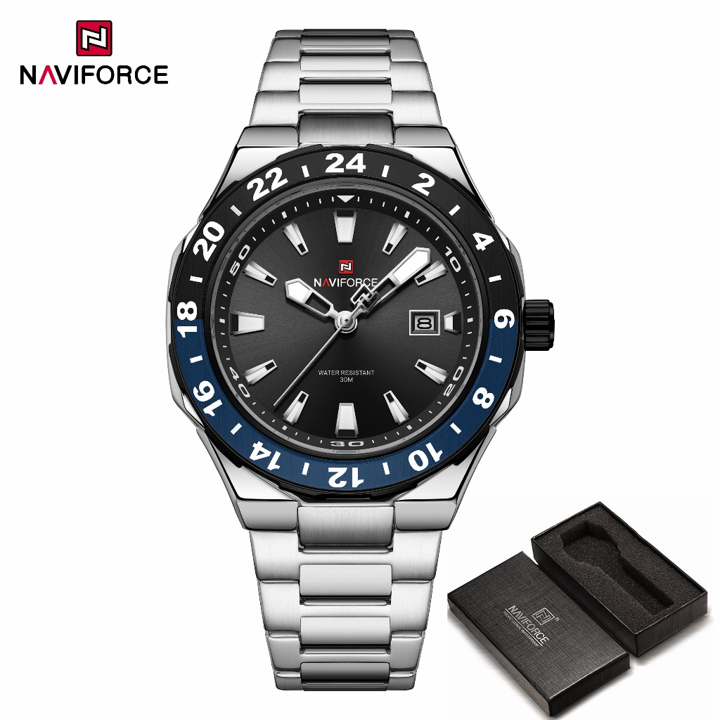 NAVIFORCE 9249 Mostrador Em Escala Masculino Com Função De Calendário Relógio Pulseira De Aço Inoxidável