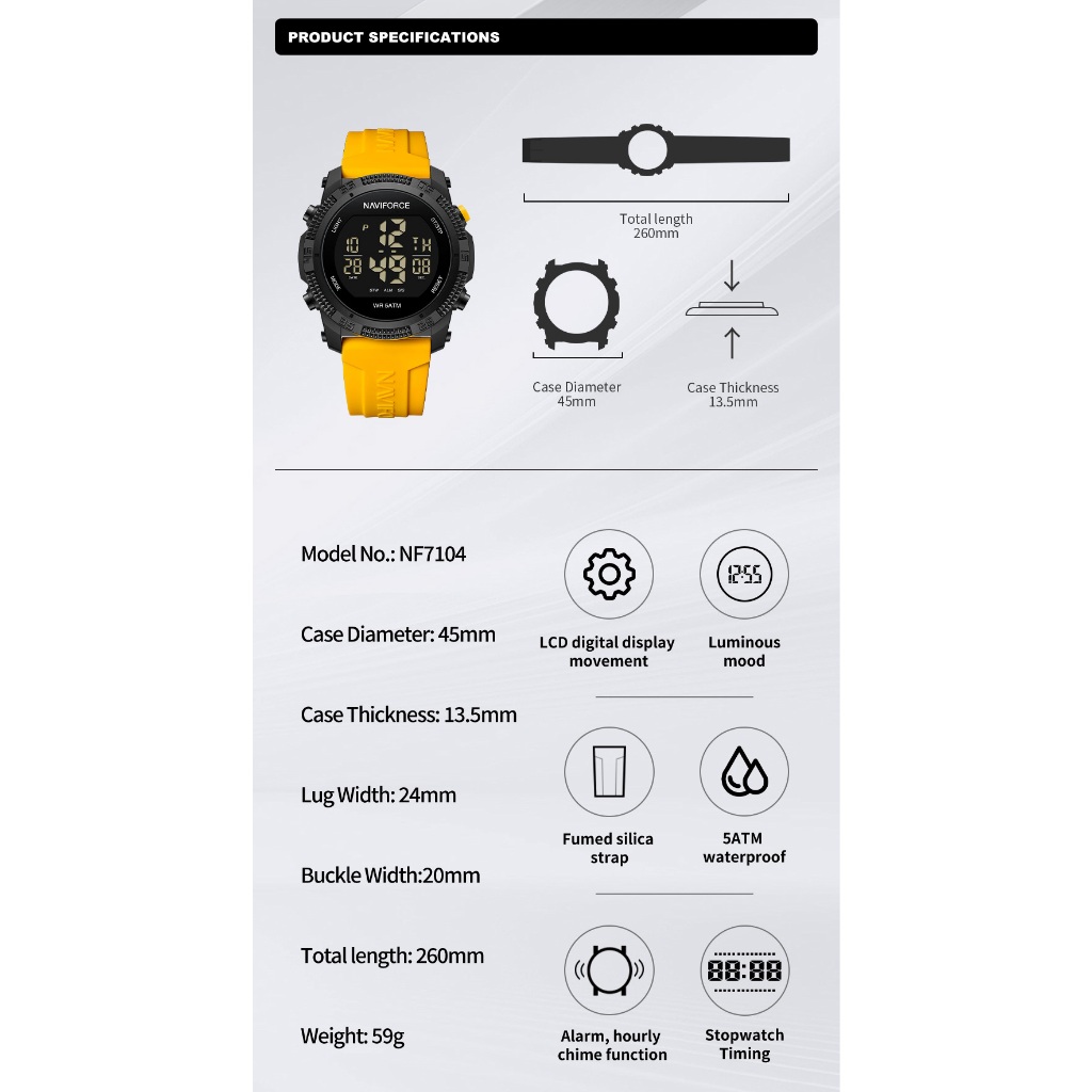 Relógio Eletrônico Naviforce Sports Men's Trend À Prova D'água Luz Nocturna Multi-Funcional 7104