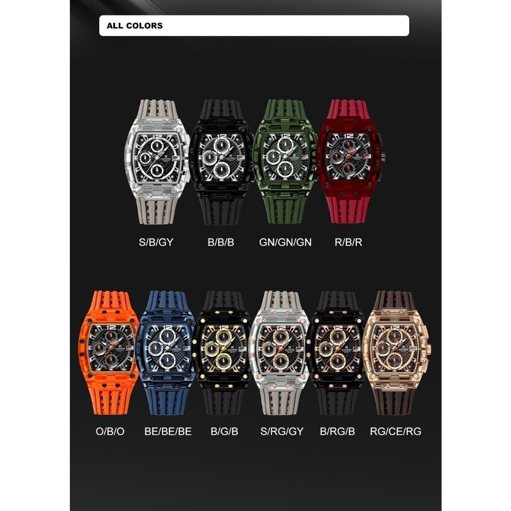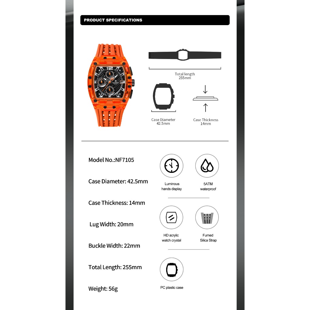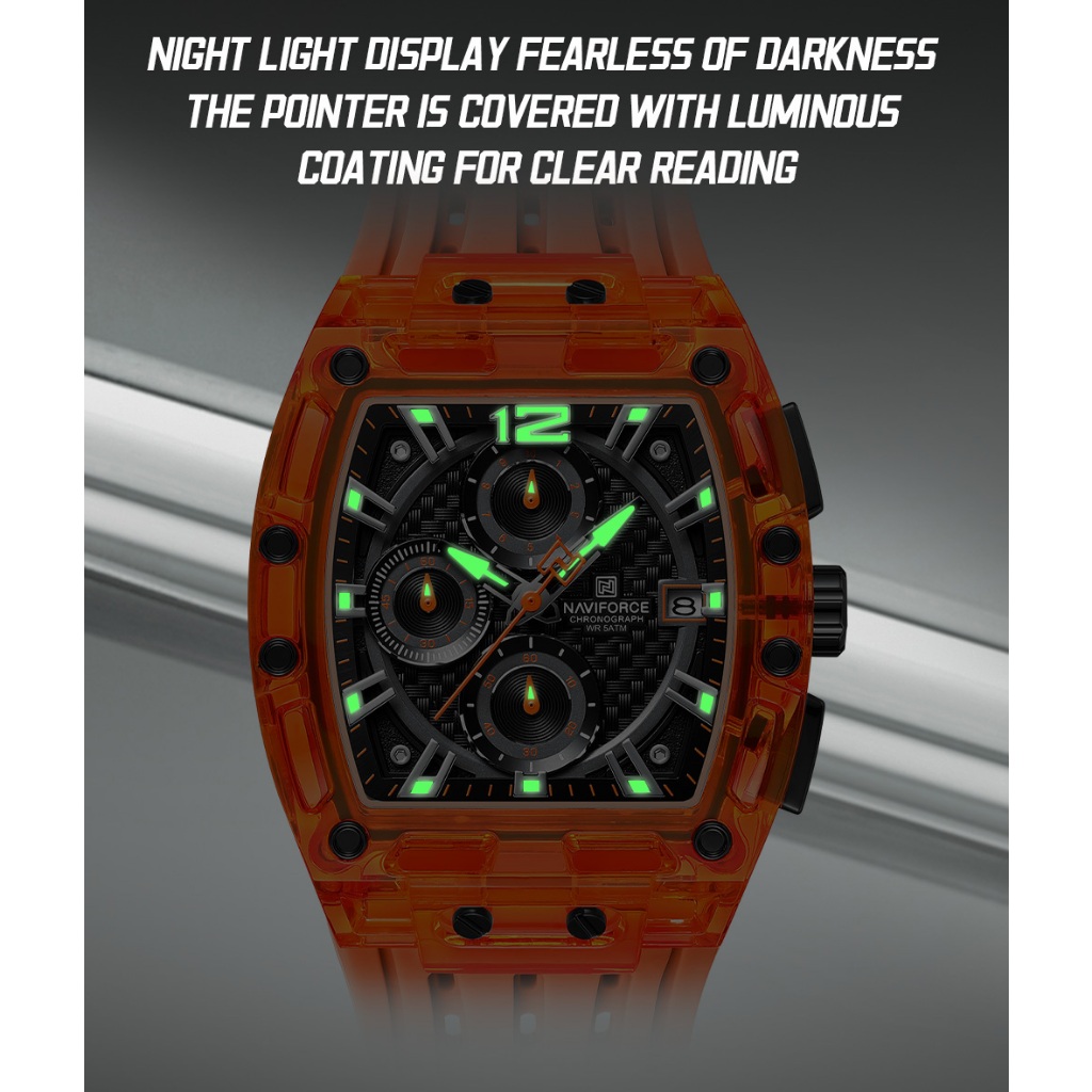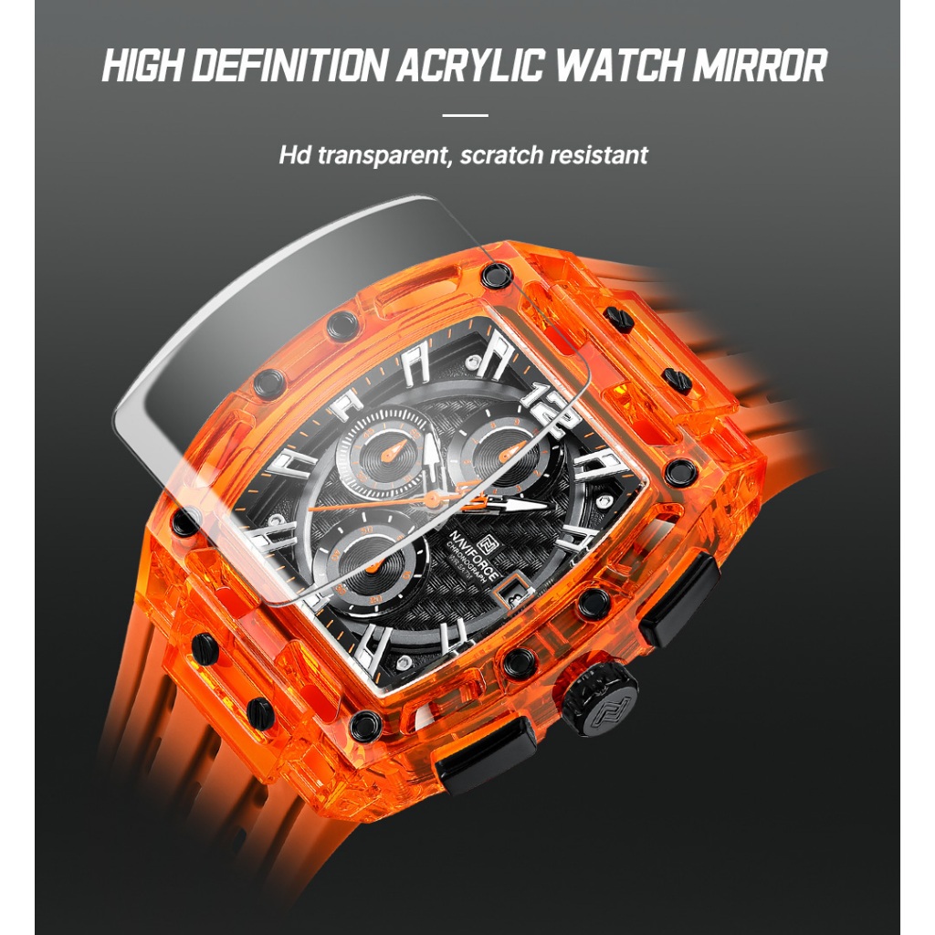 NAVIFORCE 7105 Caixa Acrílica Transparente Relógio Multifuncional À Prova D'água