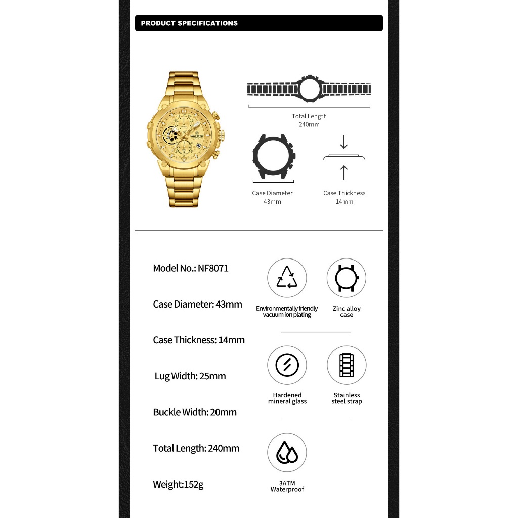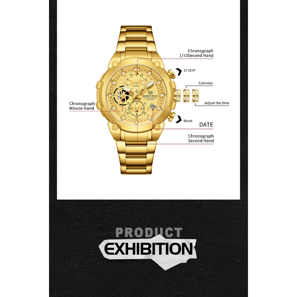 NAVIFORCE 8071 Mecânico Esporte Vento Com Calendário Multi-Dial Relógio Masculino Multifuncional