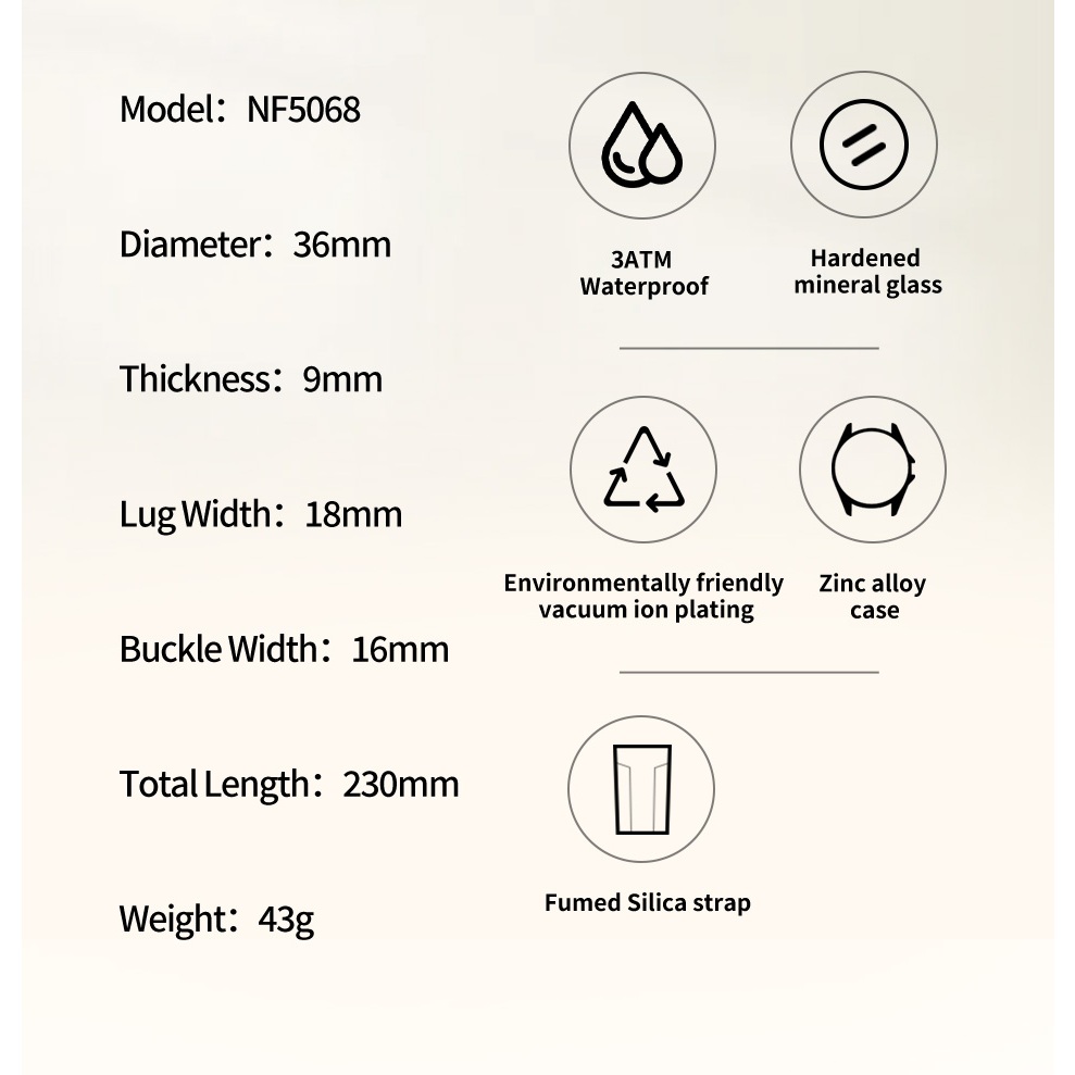 NAVIFORCE 5068 Relógio Marcador De Mostrador Clássico Com Pulseira De Silicone Para Mulheres